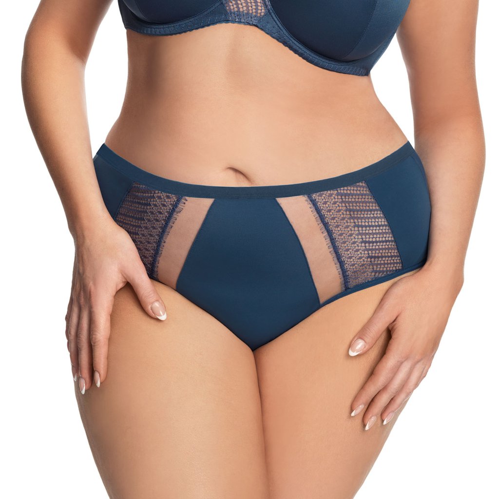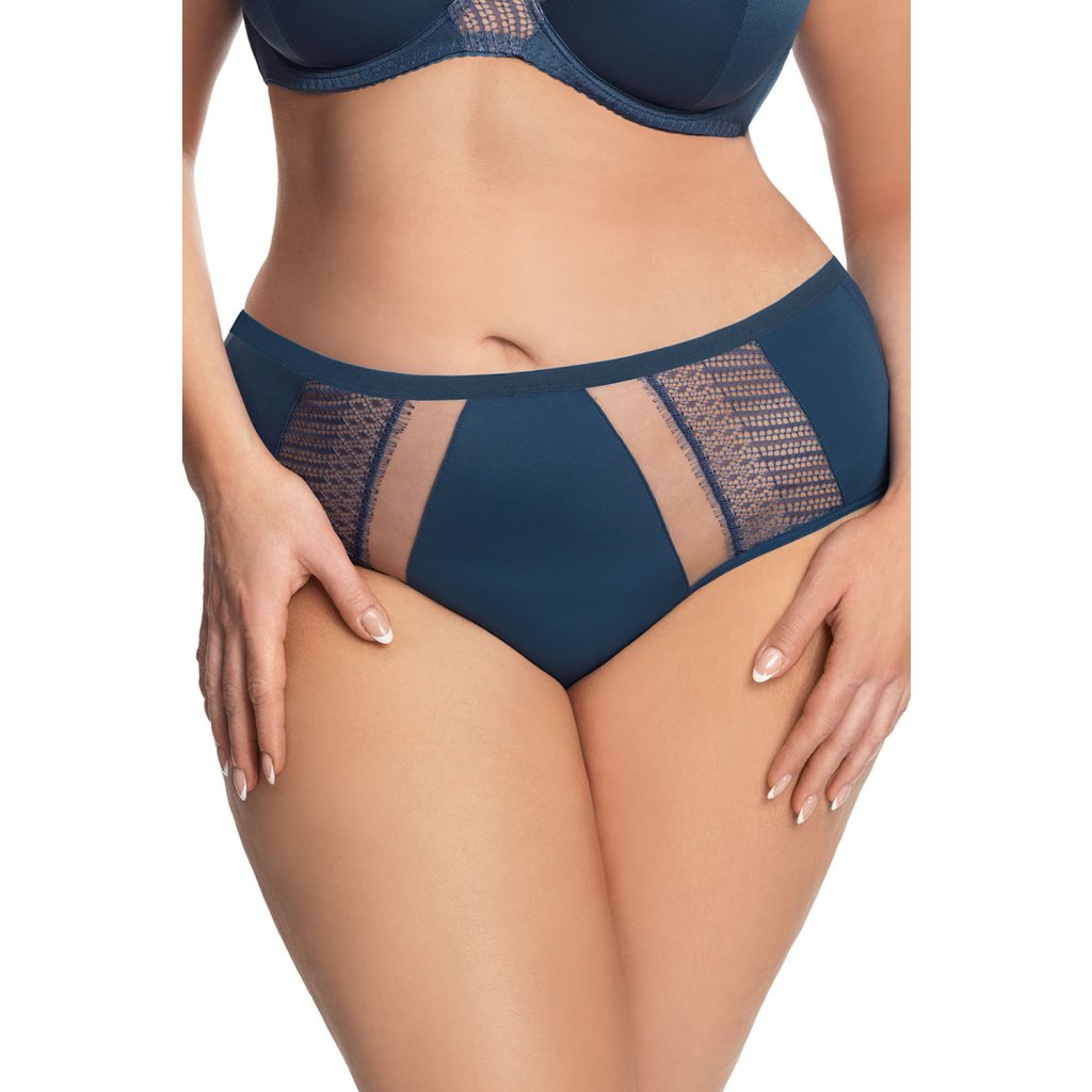 Klasické plné kalhotky z mikrovlákna. Přední díl zdobí dvě vložky z tylu a jemné krajky, spodní díl je lemován hladkou, jemnou gumičkou. Zadní strana je hladká, zakončená přeložením úpletu.Složení: Materiál: 90 % polyamid, 7 % elastan, 3 % polyester.