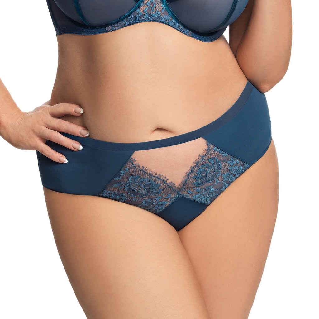 Elegantní kalhotky s vysokým pasem. Vyrobeno z měkkého mikrovlákna zdobeného tylem a jemnou krajkovou vsadkou na přední a zadní straně. Zpět hladce. Nohavice jsou vpředu zakončené tenkou hladkou gumičkou. Zadní nohy jsou zakončeny hladkou dvojitě skládanou tylovou gumou.Složení: Materiál: 90 % polyamid, 7 % elastan, 3 % polyester.