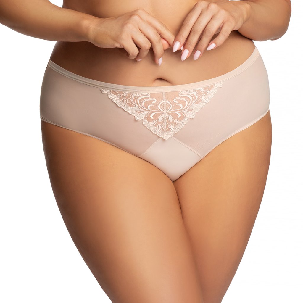 Dámské kalhotky plného střihu:- zdobené krajkou- boky ze síťoviny- zadní část z dvojitého tylu, bezešvéSložení: 90 % polyamid, 7 % elastan, 3 % polyesterDoplňkové parametry