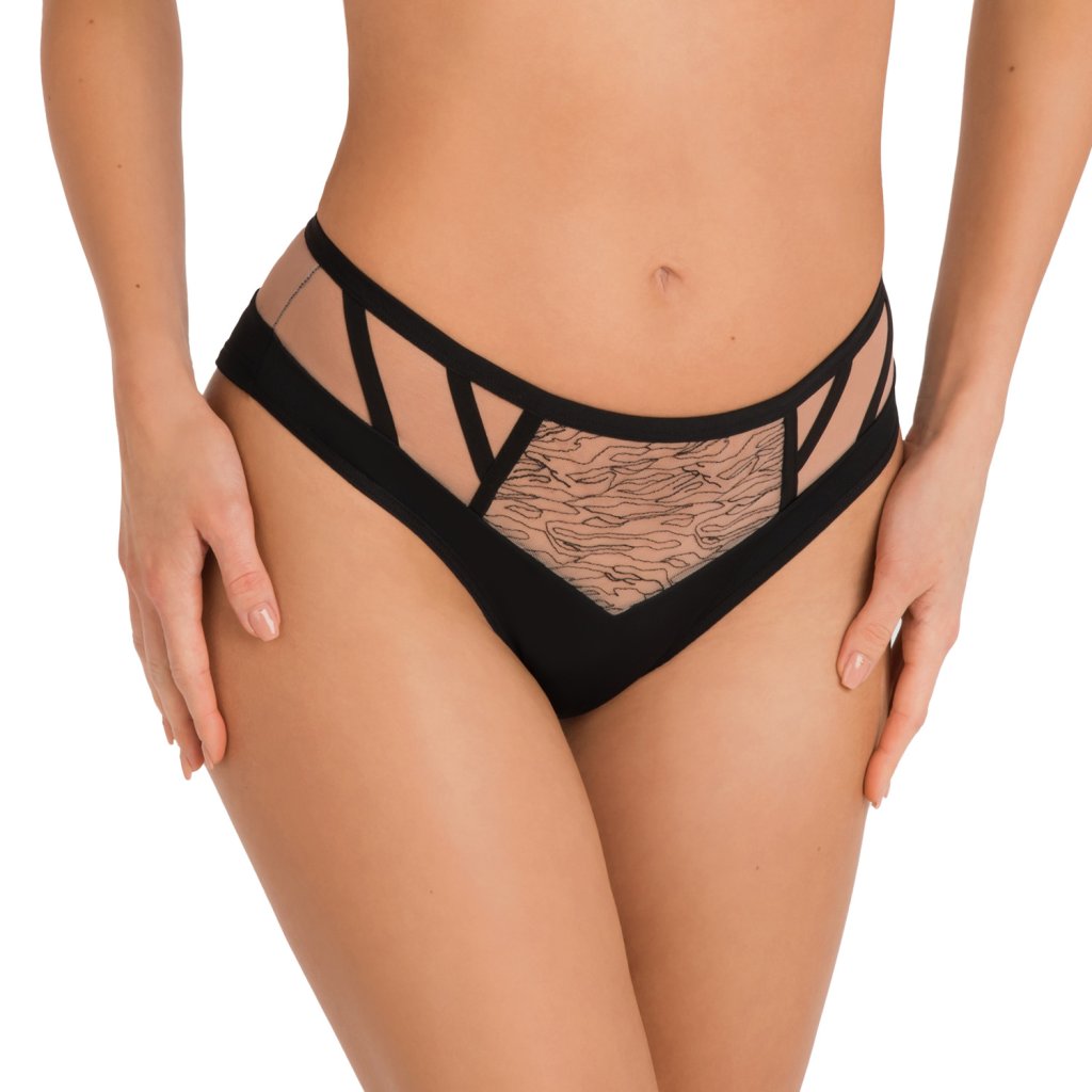 Dámské kalhotky:- z mikrovlákna a tylové siťoviny s jemnou výšivkou- na bocích elastické pásky- zadní část z tylové siťoviny a mikrovlákna s prošívanímSložení: 90 % polyamid, 7 % elastan, 3 % polyesterDoplňkové parametry