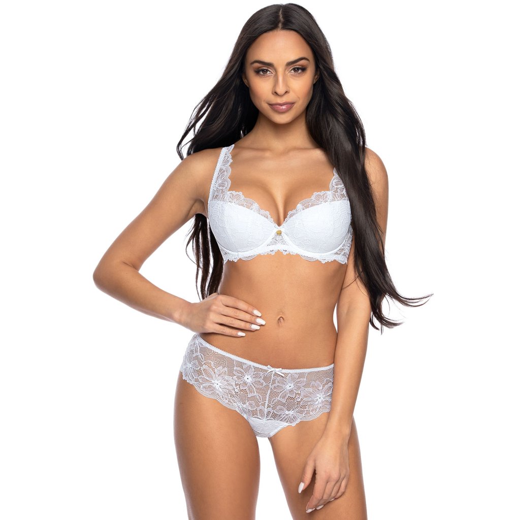 Dámské kalhotky- krajka s květinovým motivem- pásek zdobený saténovou mašlí- bavlněný klínSložení: 81% polyamid, 11% elastan, 8% bavlna.Doplňkové parametry