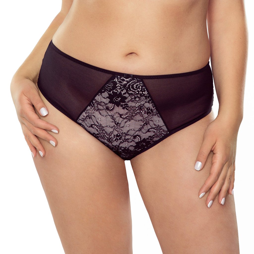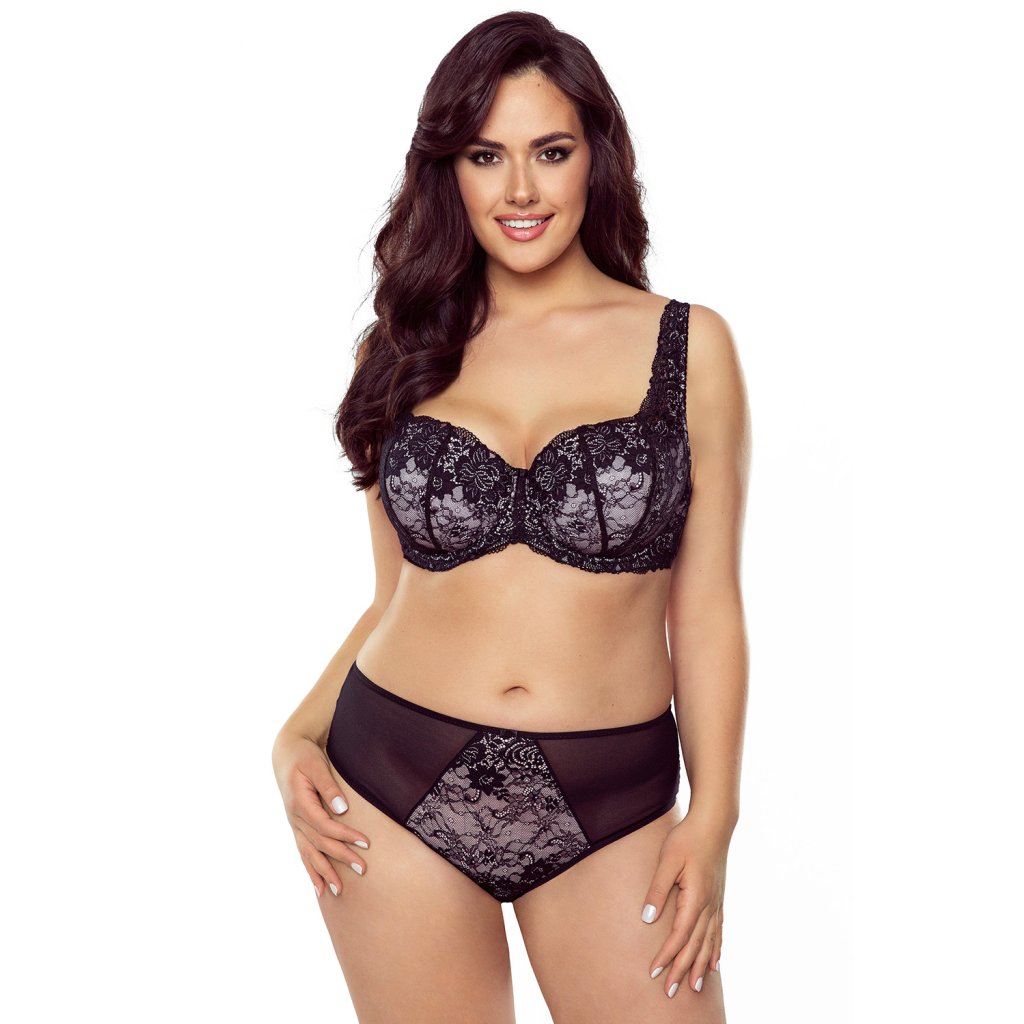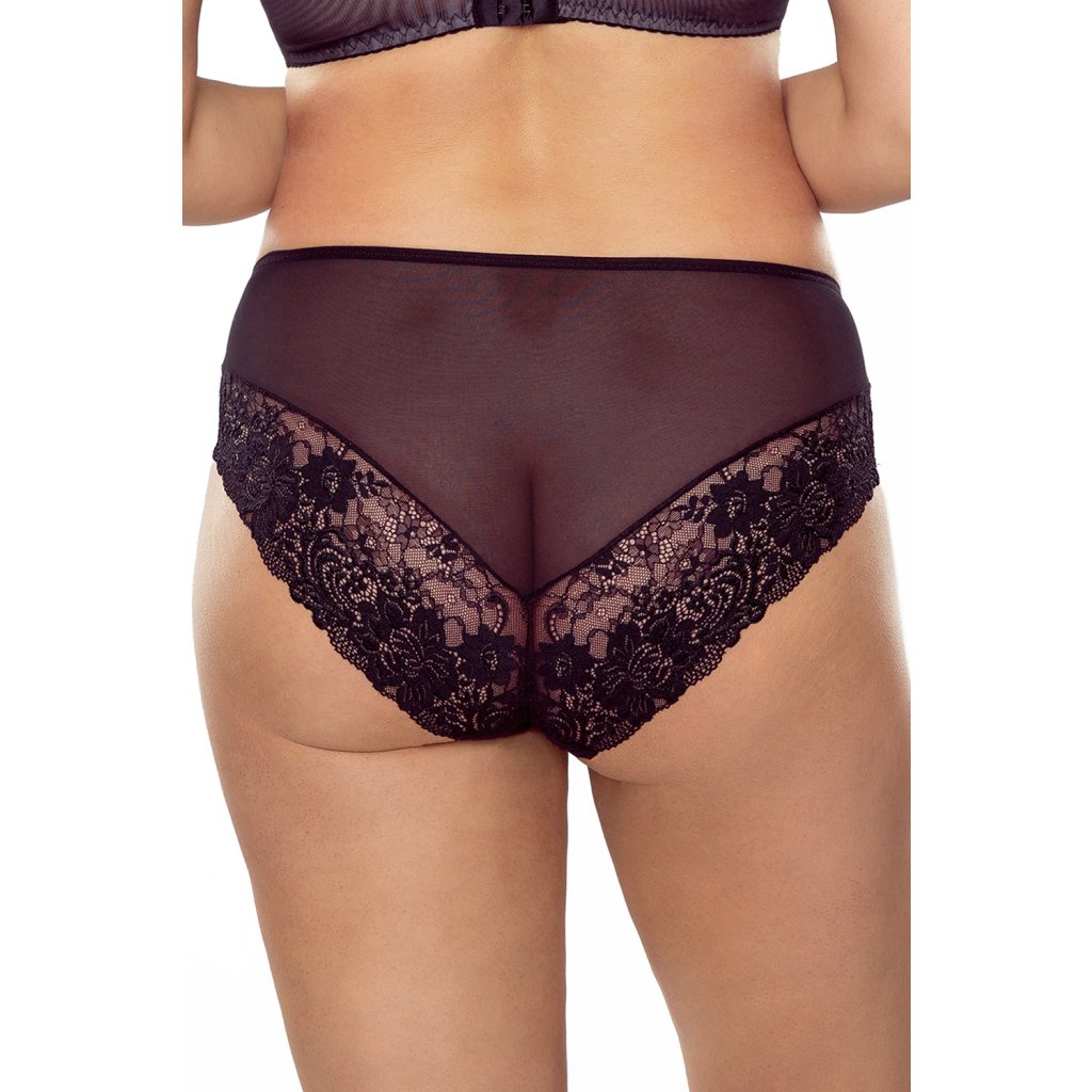 - přední vsadka ze světle růžové síťoviny potažená černou krajkou