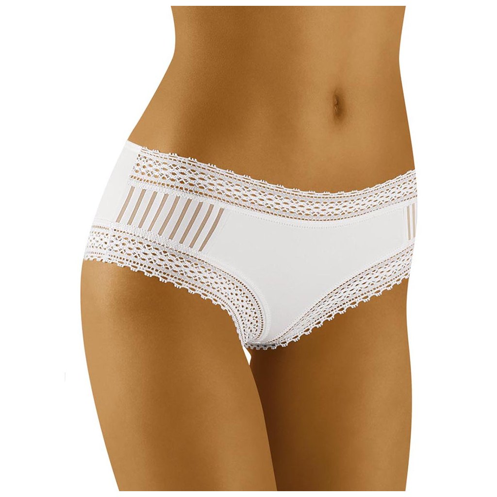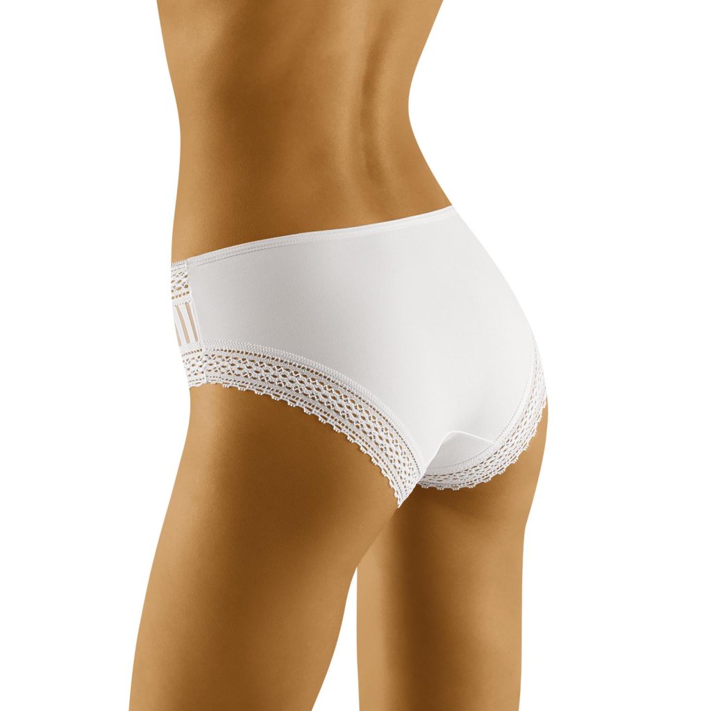 Dámské bokové kalhotky. Nohavičky a vršek předního dílu jsou tvořeny svůdnou krajkou. Ploché lemy zajišťují pohodlí při používání a nevystupují zpod oblečení. Složení: 83% polyamid, 17% elastan.Doplňkové parametry