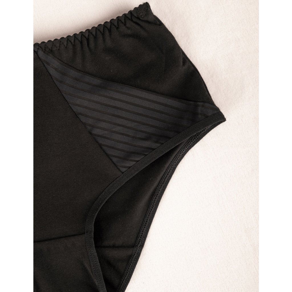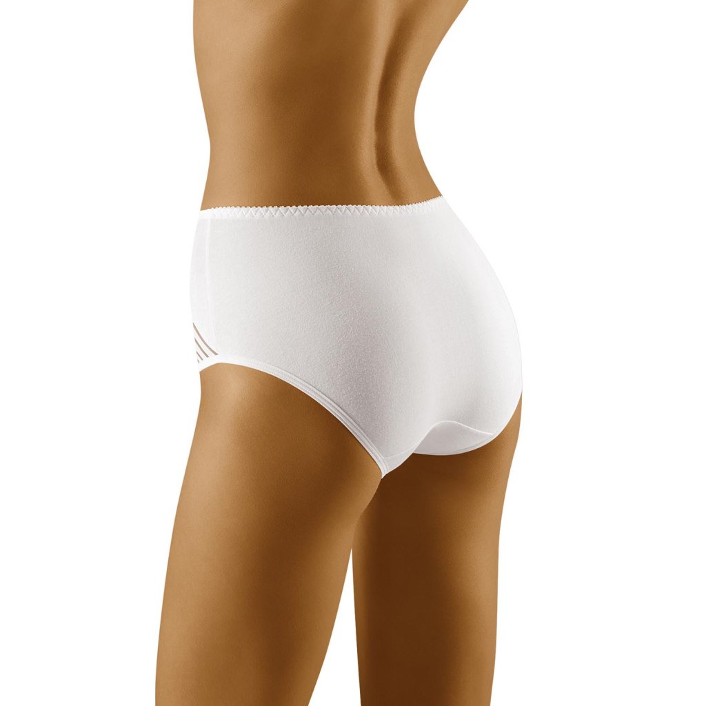 Plné vysoké kalhotky, které jsou vyrobené z velmi kvalitní ekologické bavlny s přídavkem lycry.Přední díl modelu je ozdobený ažurovým mikrovláknem. Zadní díl je hladký, jednobarevný. Složení: 90 % bavlna, 7 % elastan, 3 % polyamid.Doplňkové parametry