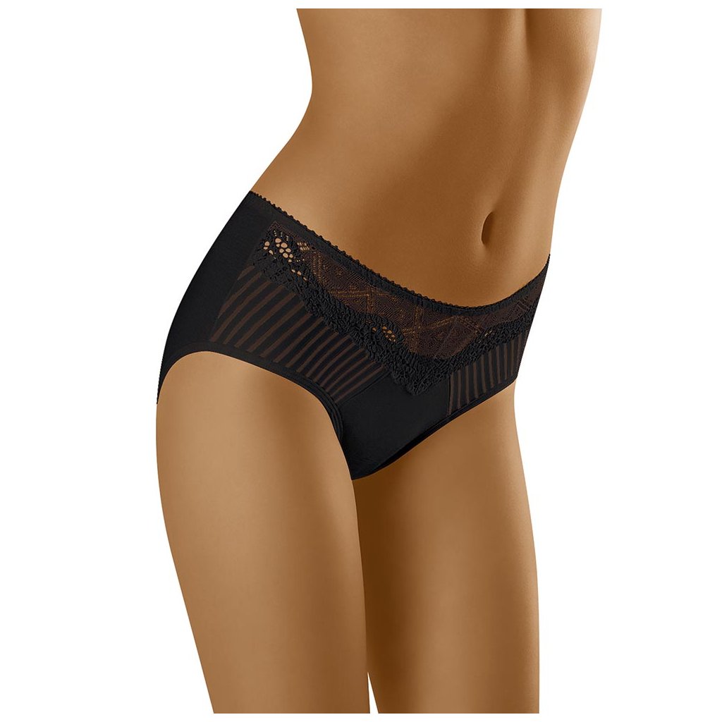 Pohodlné, plné kalhotky.- pruhovaná pletenina a krajkové vsadky na přední straně