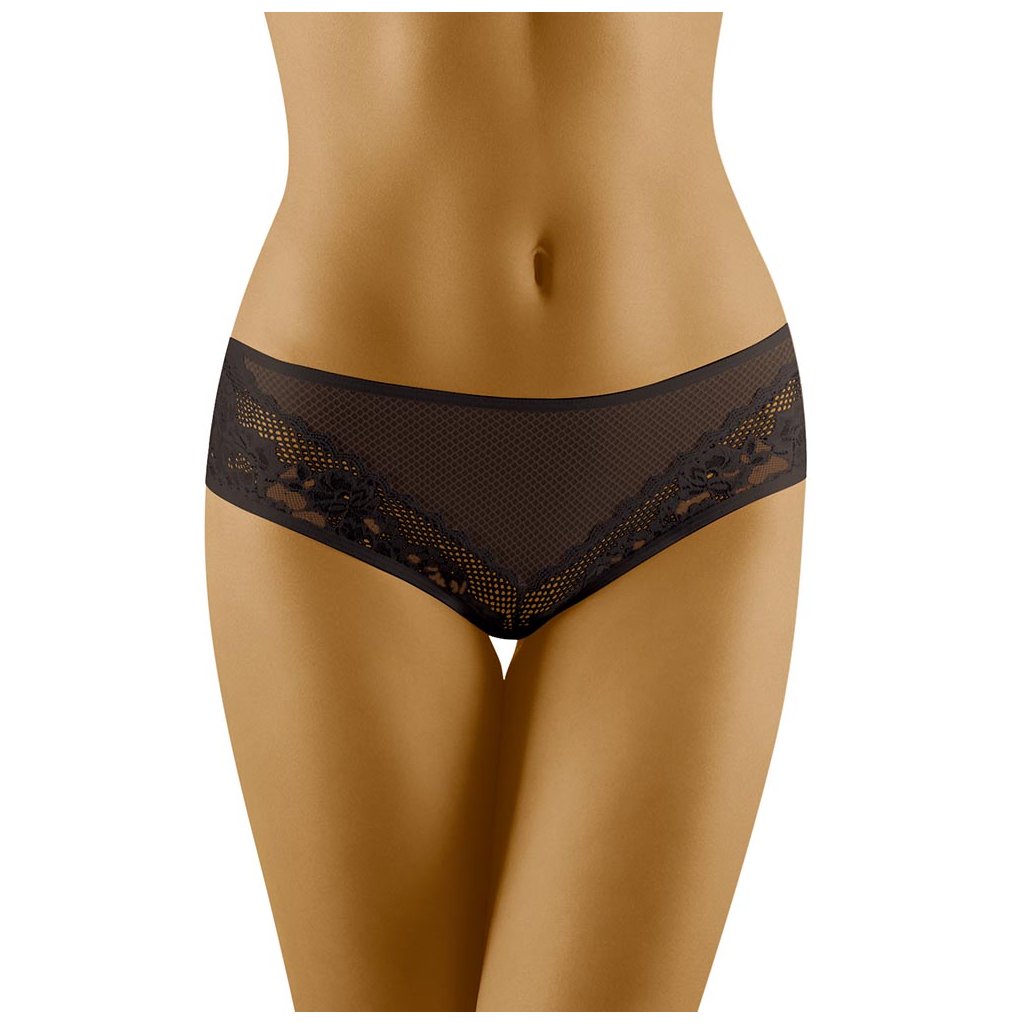 Hebké dámské kalhotky vyššího střihu Wolbar Kera jsou vyrobeny z elastické hladké microfáze a krásné delikátní krajky. Zadní část je hladká, lemy nohaviček jsou krajkové. Oblast klínu je podložená bavlněnou látkou, pas a nohavičky zakončuje měkká prádlová gumička. Materiál: 83% Microfibra + 17% ElastanDoplňkové parametry