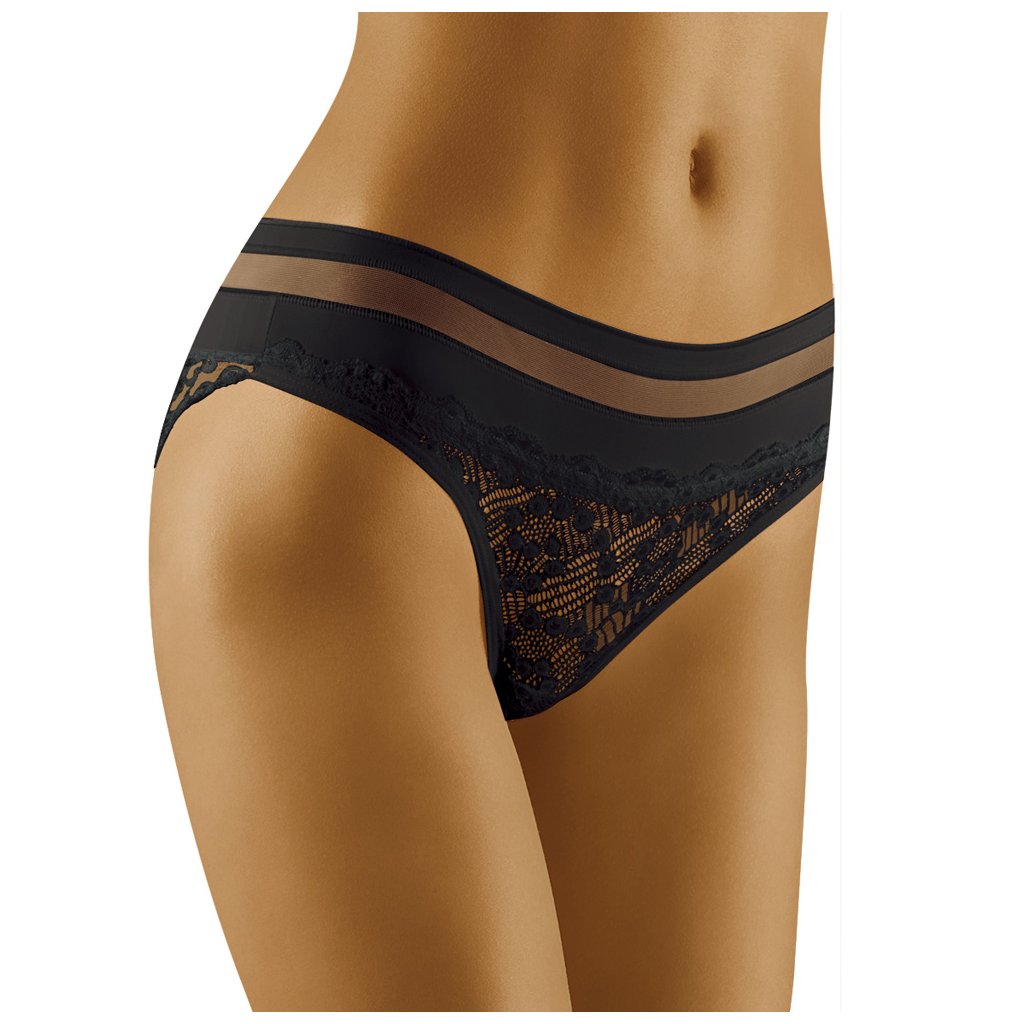 Klasické dámské kalhotky, které jsou vyrobené z mikrovlákna, síťoviny a efektní krajky.Složení: 83 % polyamid, 17 % elastan.Doplňkové parametry