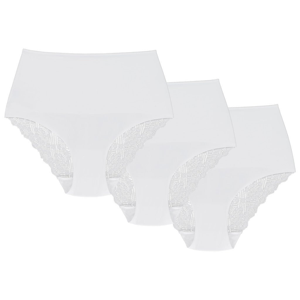 Elegantní kalhotky tvarující postavu. Kalhotky mají vysoký pas a jsou ušité plochými švy. Nohavičky jsou střižené laserovou technologií. Model má vzadu krajkovu vsadku. Kalhotky se při nošení nerýsují pod oblečením. V baleni 3ks.Složení: 58% polyamid, 42% elastan.