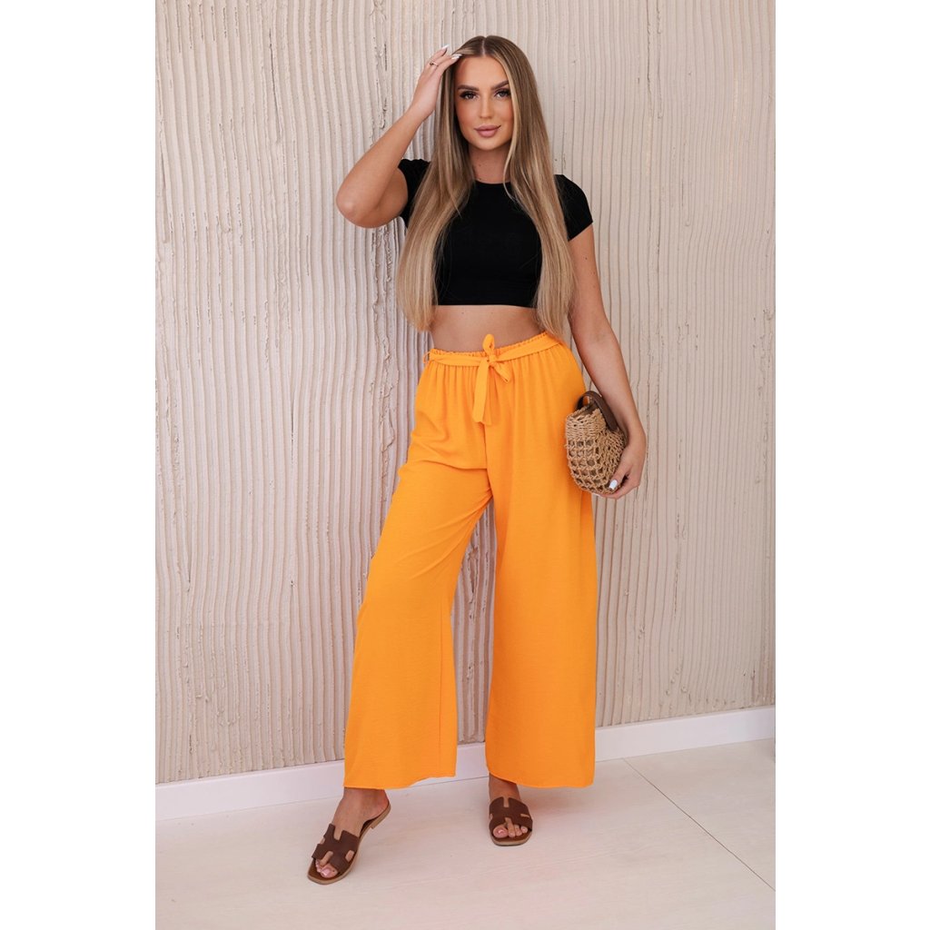 Široké kalhoty se zavazováním v pase jsou módní a pohodlnou volbou pro mnoho příležitostí. Široké nohavice dodávají celému stylingu volnost a lehkost, zatímco zavazování v pase umožňuje přizpůsobit kalhoty vašim individuálním preferencím. Jsou perfektní na letní procházky, neformální schůzky nebo večerní výlety, dodají vašemu stylu módní akcent a pohodlně se nosí. Tyto kalhoty se rychle stanou nenahraditelným prvkem vašeho šatníku, spojí funkčnost a styl.