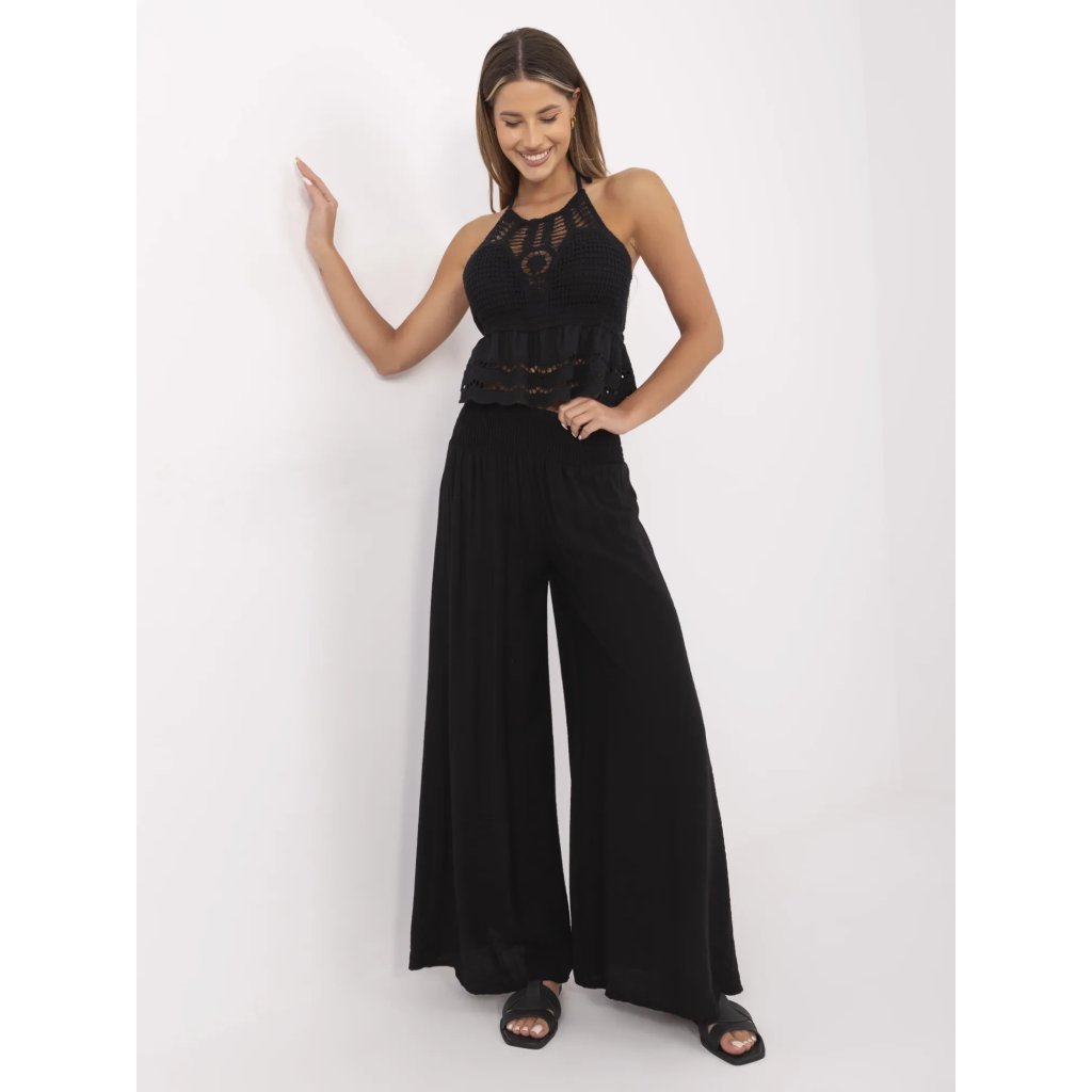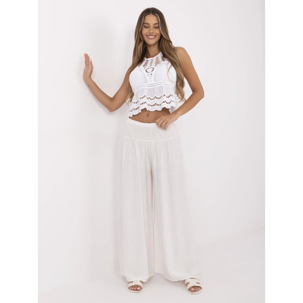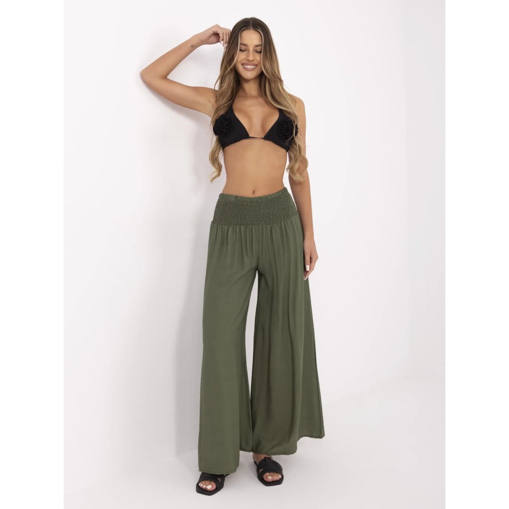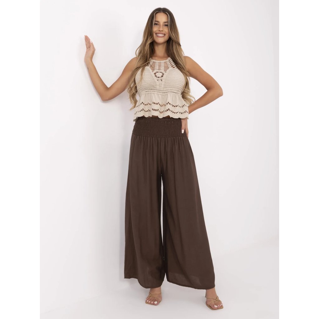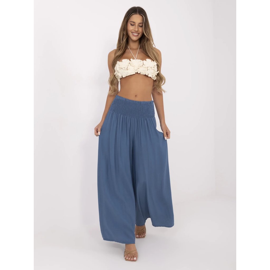 Dámské viskózové kalhoty s pružným pasemSložení materiálu: 88% viskóza, 12% nylon