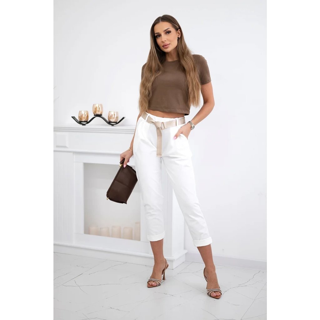 Kalhoty Punto s páskem jsou stylovou a pohodlnou volbou, která spojuje eleganci s funkčností. Vyrobeny z vysoce kvalitního materiálu, zajišťují pohodlí při nošení a dokonalé přizpůsobení. Pásek v pase zvýrazňuje postavu a dodává kalhotám sofistikovaný charakter. Jsou ideální jak pro každodenní nošení, tak pro formálnější příležitosti. Tyto kalhoty jsou univerzálním prvkem šatníku, který umožňuje vytvořit mnoho módních outfitů. Kalhoty s páskem jsou nezbytností pro každou ženu, která si cení elegance a pohodlí v jednom.