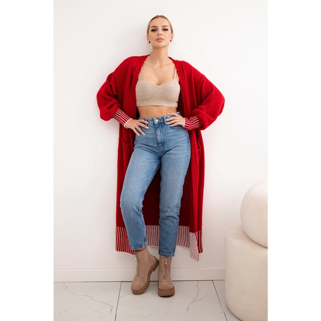 Dlouhý kardigan s kapsami vyrobený v Itálii je výjimečně stylový a funkční kousek oblečení, ideální do chladnějších dnů. Vyrobeno z vysoce kvalitních materiálů, poskytuje teplo a pohodlí. Má praktické kapsy a ozdobné manžety na rukávech a ve spodní části svetru mu dodávají elegantní vzhled a originální charakter. Tento kardigan je ideální pro ležérní styling a jeho delší střih poskytuje dodatečnou ochranu před chladem a zároveň zvýrazňuje postavu. Velikost je univerzální a bude vhodná pro ženy, které nosí velikost S, M nebo L.