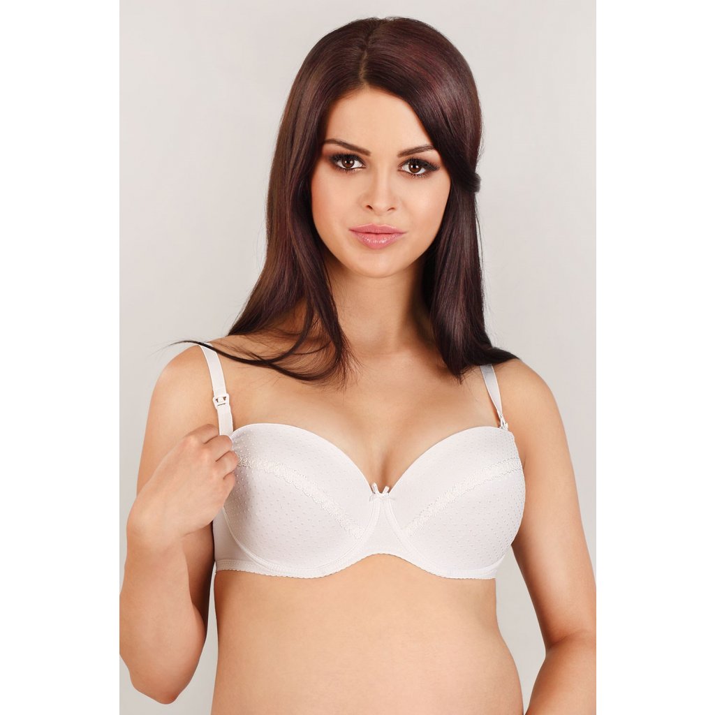 Podprsenka pro kojící ženy.Podprsenka je vyrobená z mikrovlákna s lesklými puntíky. Košíčky jsou jemně vyztužené a mají kostice. Z vnitřní strany jsou košíčky podšité bavlnou. Díky zapínání typu "Clic-Clac" je možné odepnout a zapnout košíčky jednou rukou. Dítě tedy lze nakojit i bez vysvlékání podprsenky. Ramínka modelu je možné nastavit.Složení: 70 % polyamid, 20 % elastan, 10 % bavlna.Doplňkové parametry