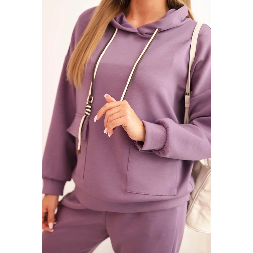 Komplet dámská mikina s kapucí a kalhoty s páskem