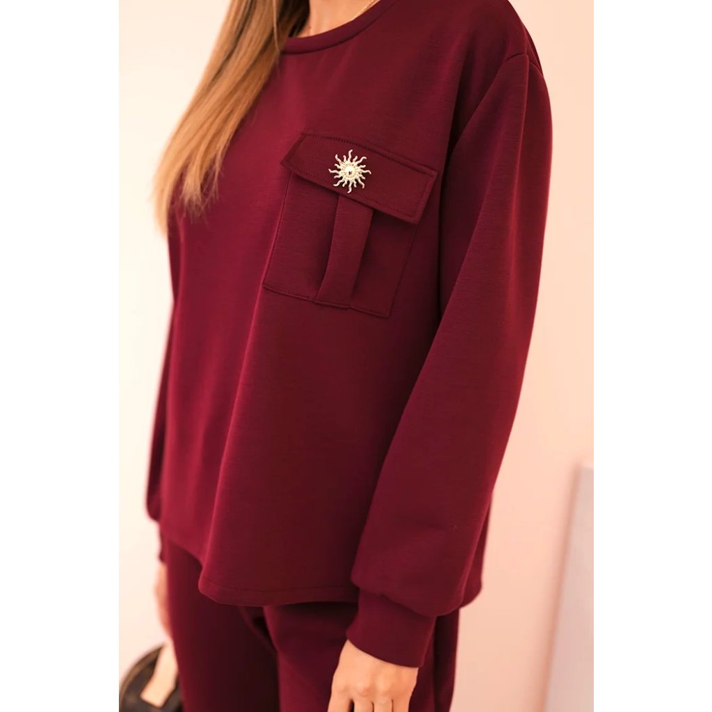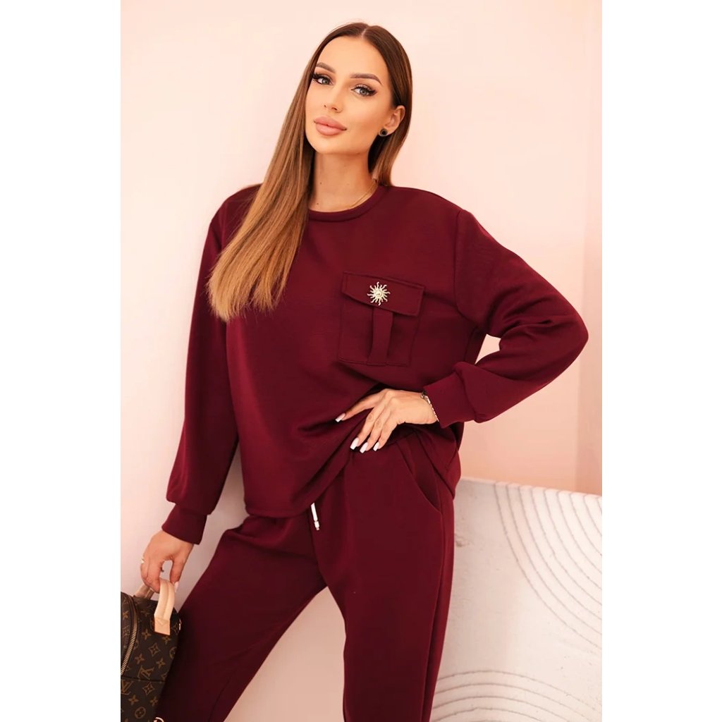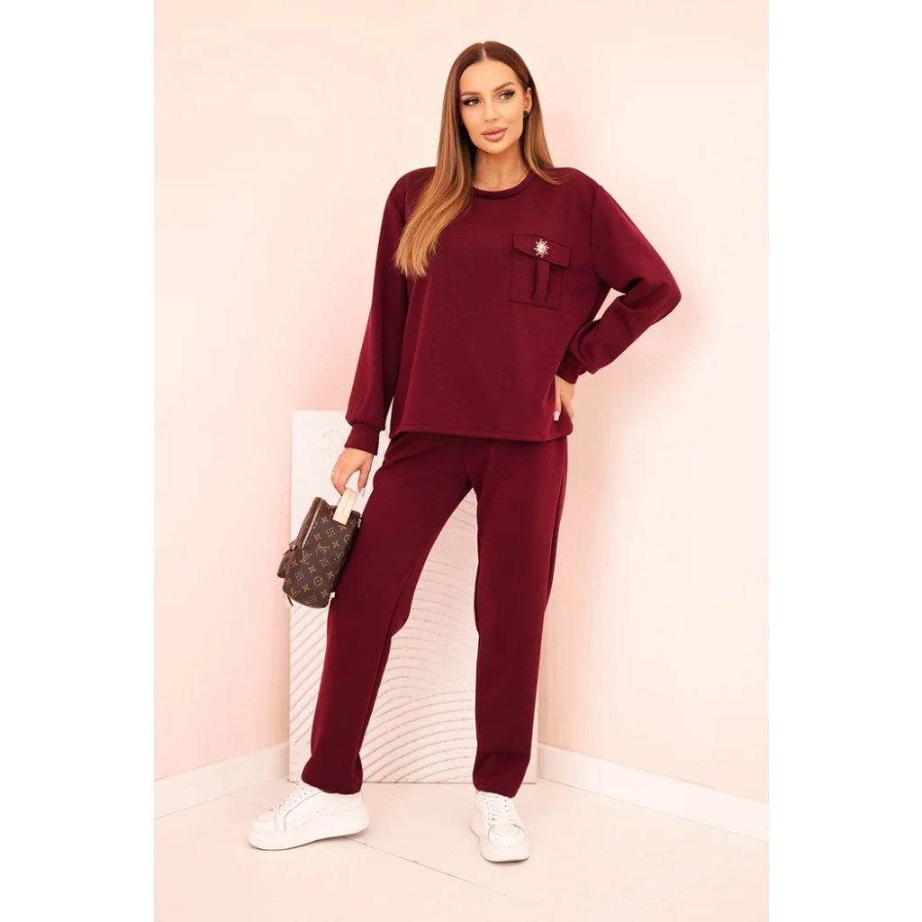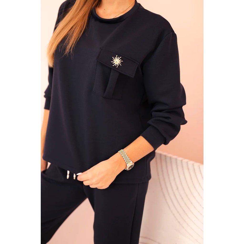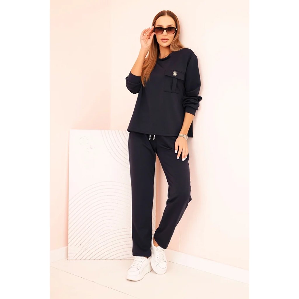Dámská souprava z máslové látky je ideální nabídkou pro ženy, které si cení pohodlí, módního vzhledu a vysoké kvality textilu. Mikina s jednoduchým střihem a dekorativní kapsou s klopou skvěle vypadá v každodenních stylizacích. Kalhoty s rovnou nohavicí a elastickým páskem zajišťují pohodlí po celý den a přizpůsobují se postavě.
