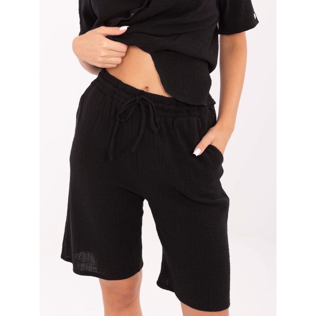 Míry kraťasů ve velikosti S jsou: šířka v pase - 36 cm (v rozloženém stavu), šířka v pase - 55 cm (v nataženém stavu), výška sedu - 34 cm, šířka v bocích - 61 cm, celková délka - 55 cm.