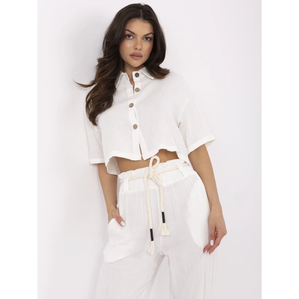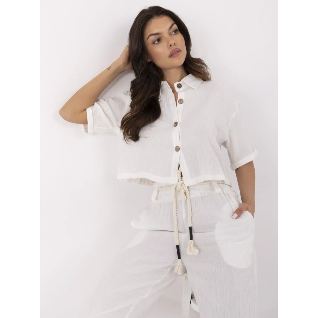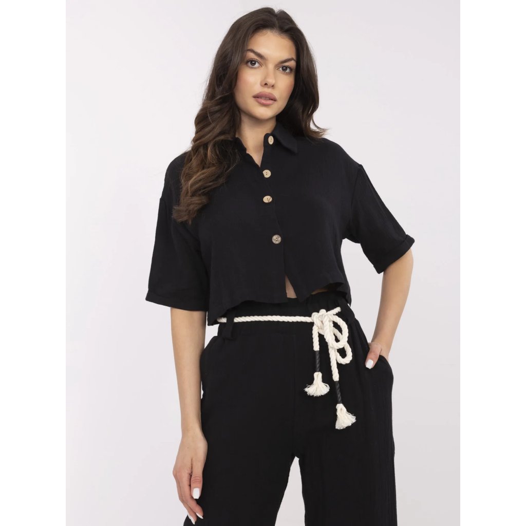 Míry košile ve velikosti S/M, v plochém stavu: šířka v podpaží - 50 cm, délka rukávu - 22 cm (od švu), celková délka - 44 cm, šířka boků - 50 cm.