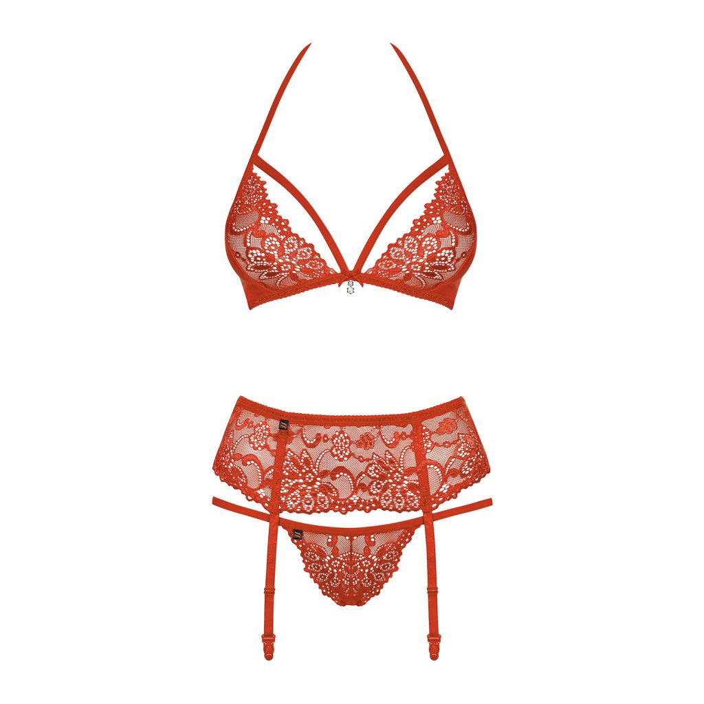 838-SEG-3Neuvěřitelně sexy podprsenka, lákavý podvazkový pás a rozkošná tanga. Hádejte co? Zamilujete se do tohoto úžasného setu! Kombinujte je se smyslnými punčochami a ... budete se cítit fantasticky! To je nejlepší způsob, jak začít s nezbednou zábavou se svým blízkým!Zkontrolujte báječné detaily:• třídílný krajkový set• měkká podprsenka zdobená sexy gumičkami a lesklými klenoty - ohromující vzhled poprsí!• nastavitelná ramínka která se zapínají na zadní straně krku• vícestupňové zapínání• svůdný podvazkový pás - spousta sexuální přitažlivosti• tanga odhalují sexy hýždě• sada obsahuje podprsenku, podvazkový pás a tanga (ještě atraktivnější vzhled, když přidáte punčochy!)• pěkná, elastická tkanina (90% polyamid, 10% elastan)Doplňkové parametry