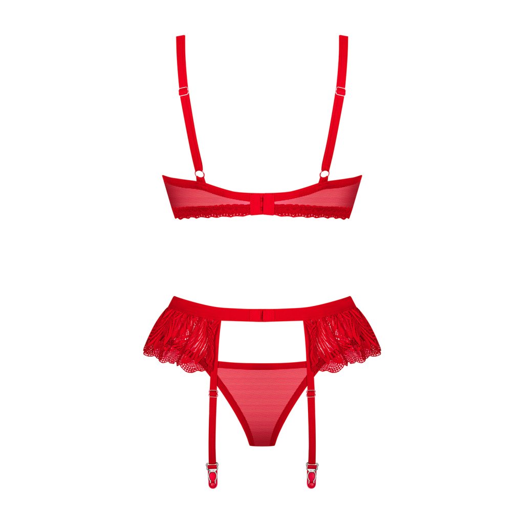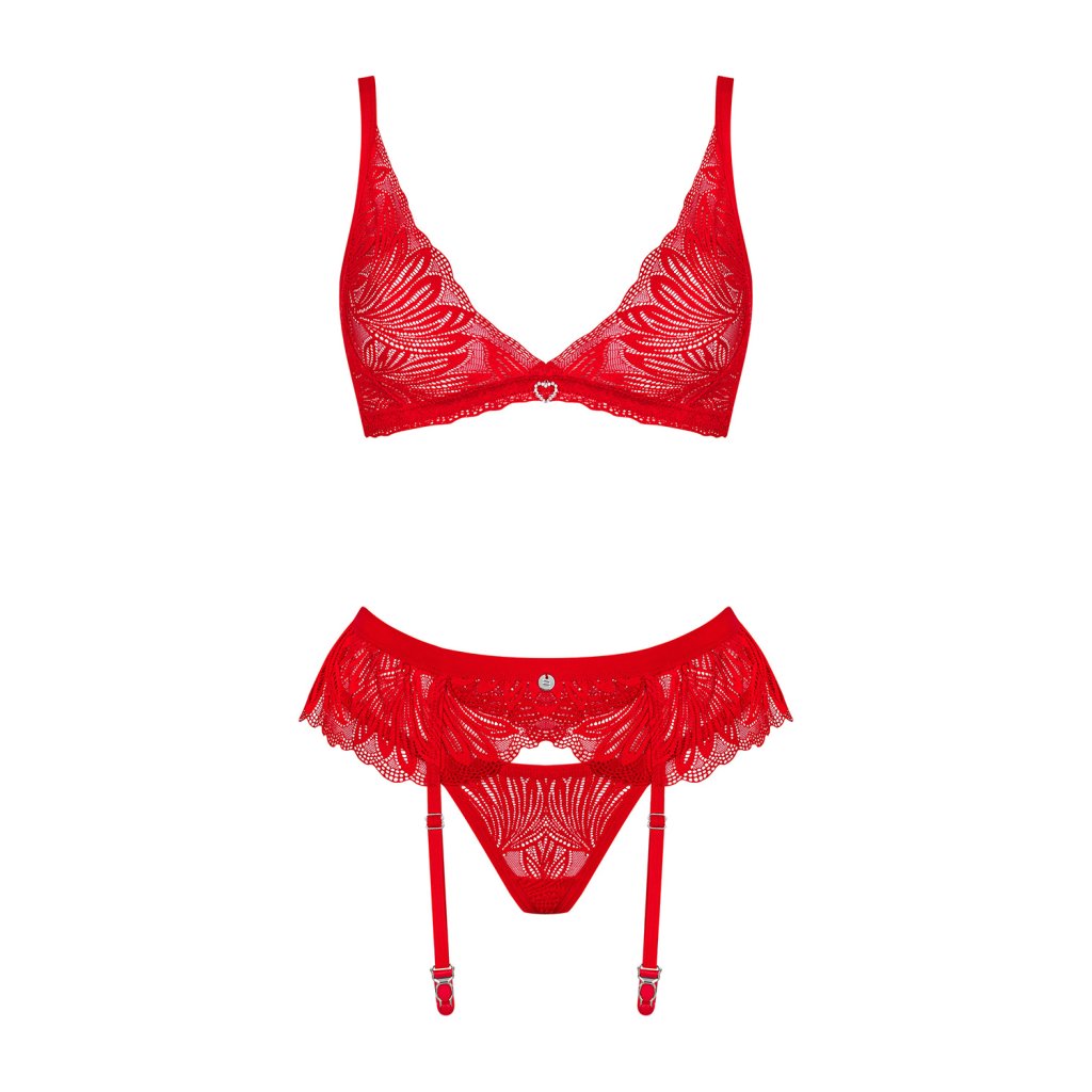 Třídílná souprava ChilisaUdělejte si společné chvíle nezapomenutelnými. Už neváhejte! Sáhněte po svůdné krajkové soupravě spodního prádla v intenzivní červené barvě, která vás nadchne svým detailním zpracováním. Zdůrazněte své přednosti, ciťte se sexy jako nikdy předtím a rozpalte vášeň ve své ložnici.Zjistěte více podrobností:Červená souprava spodního prádla, která se skládá z podprsenky, podvazkového pásu a tang.nastavitelná ramínka a vícestupňové zapínání pro dokonalé přizpůsobení se postavěkrajkové lemování s originálním vzoremstříbrné srdce se zirkony a lesklý přívěsek - zajímavé doplňkyna dotek jemná tkanina s vysokou elasticitouMateriálové složení: 90% polyamid, 10% elastanDoplňkové parametry