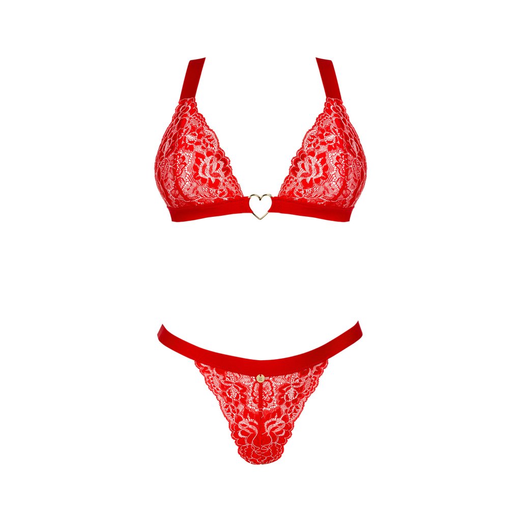 Elianes Komplet 2-dílnýKrajkové svádění! Zamilovaný červený set spodního prádla Elianes od Obsessive s měkkou podprsenkou a tangy. Vyrobeno z krásné strečové květinové krajky a měkkých pásků se zlatými detaily. Měkká podprsenka s ozdobným srdíčkem mezi košíčky. Pohodlná široká ramínka a zapínání na háček vzadu lze upravit podle potřeby. Krajková tanga svádí drobným ozdobným prvkem v přední části pasu.
