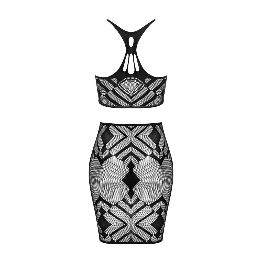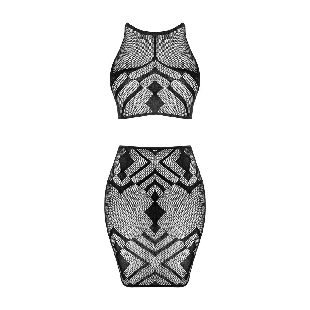Chtěli byste nové, netradiční povlečení? Máme to, co hledáte. Top a sukně ze setu K101 jsou vyrobeny z velmi elastické, pletené síťoviny. Originální, geometrické vzory krásně zdůrazní vaši postavu. Vyberte si spodní prádlo, ve kterém se bude cítit pohodlně a zároveň super sexy. Zkontrolujte další podrobnosti: - krátký top K101 s vykrojenými zády - odhaluje lopatky a břicho - v ceně pohodlná elastická sukně - jedinečný design - elastický materiál Složení: 90% nylon, 10% elastan.Doplňkové parametry