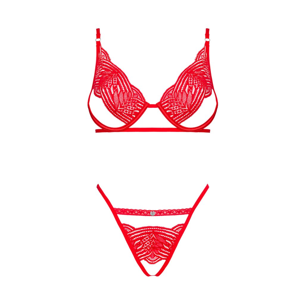 Sada MellaniaJste připraveni na velmi dlouhou a žhavou noc ve své ložnici? Pokud ano, nezapomeňte si s sebou vzít tuto super sexy soupravu z kolekce Mellania. Pikantní střihy a odvážný styl vám umožní naplnit vaše nejniternější touhy a šťavnatá červená barva rozpaluje smysly! Efektní krajka dodává eleganci a jemně obepíná tělo a kalhotky s otevřeným rozkrokem posouvají nezbedné hrátky na mnohem vyšší úroveň!Zjistěte více podrobností:- sada Mellania: podprsenka a kalhotky bez rozkroku- sexy podprsenka s průstřihy - neuvěřitelně ženský vzhled- podprsenka s kosticemi - dokonalá podpora poprsí- nastavitelná ramínka a zapínání - perfektně padnoucí střih- elegantní krajka - dodává styl a třídu- kalhotky s otevřeným rozkrokem a svůdným průstřihem nad zadečkem - více potěšení a pikantnosti!- na dotek příjemná, elastická tkanina (90% polyamid, 10% elastan)Punčochy nejsou součástí baleníDoplňkové parametry