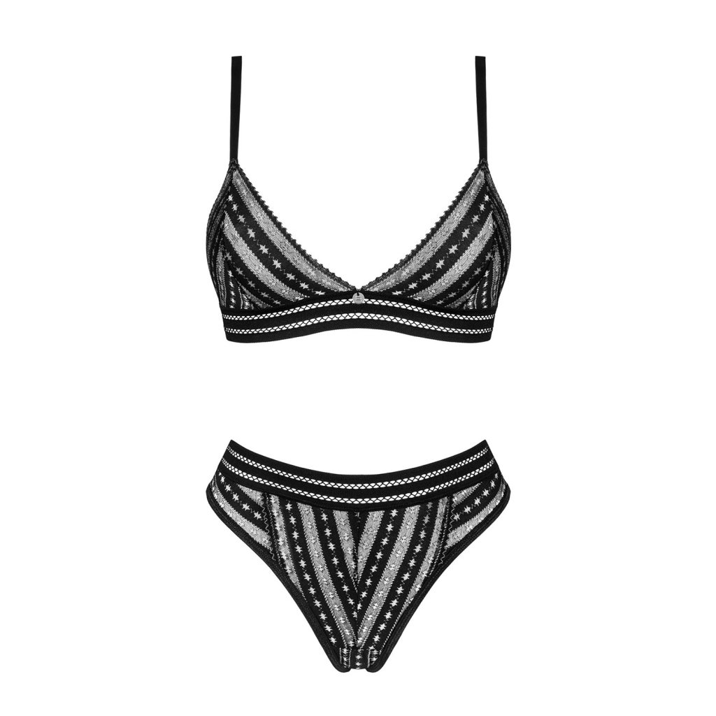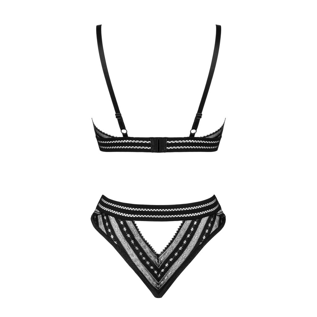 Svůdná, smyslná a fascinující sada Natilya je nabídkou k (ne)zamilování! Měkké a na dotek příjemné materiály něžně obepínají tělo a dodávají pocit ženskosti a sebevědomí. Podprsenka s trojúhelníkovými košíčky krásně odhalí i menší prsa a sexy zdůrazní dekolt. Celek doplňují pohodlné a svůdné kalhotky s poutavým výřezem na hýždích.Více informací:- trojúhelníkové košíčky podprsenky - krásný vzhled prsou- přívěsek na šperky - přidává okouzlující detaily- nastavitelné ramenní popruhy - nastavitelnost- dámské kalhotky s výřezem na hýždích - sexy zvýrazněné tvary- pružný a na dotek příjemný materiálSložení: 90 % polyamid, 10 % elastan.Doplňkové parametry