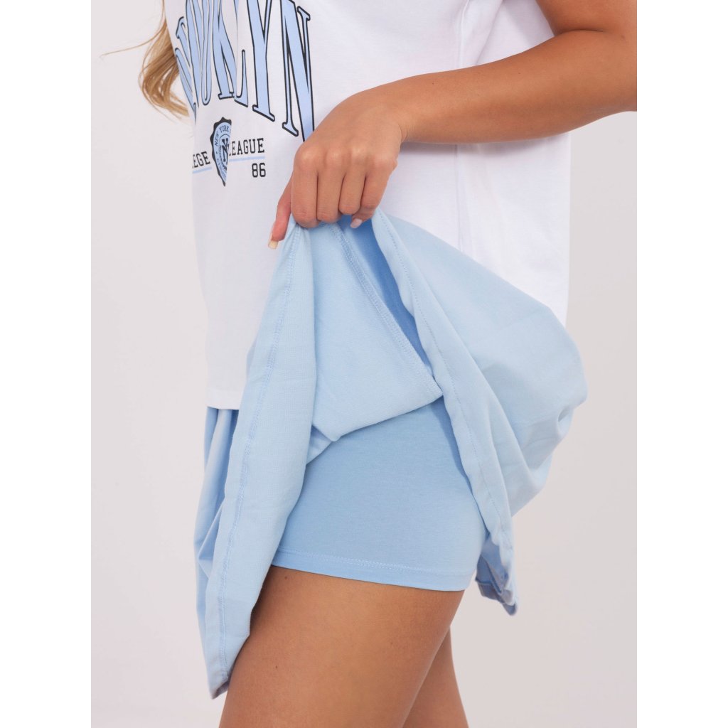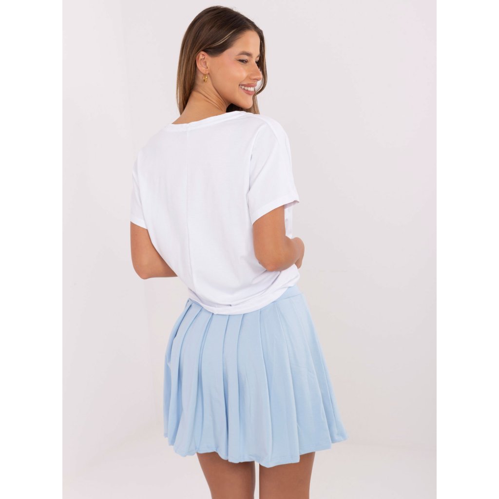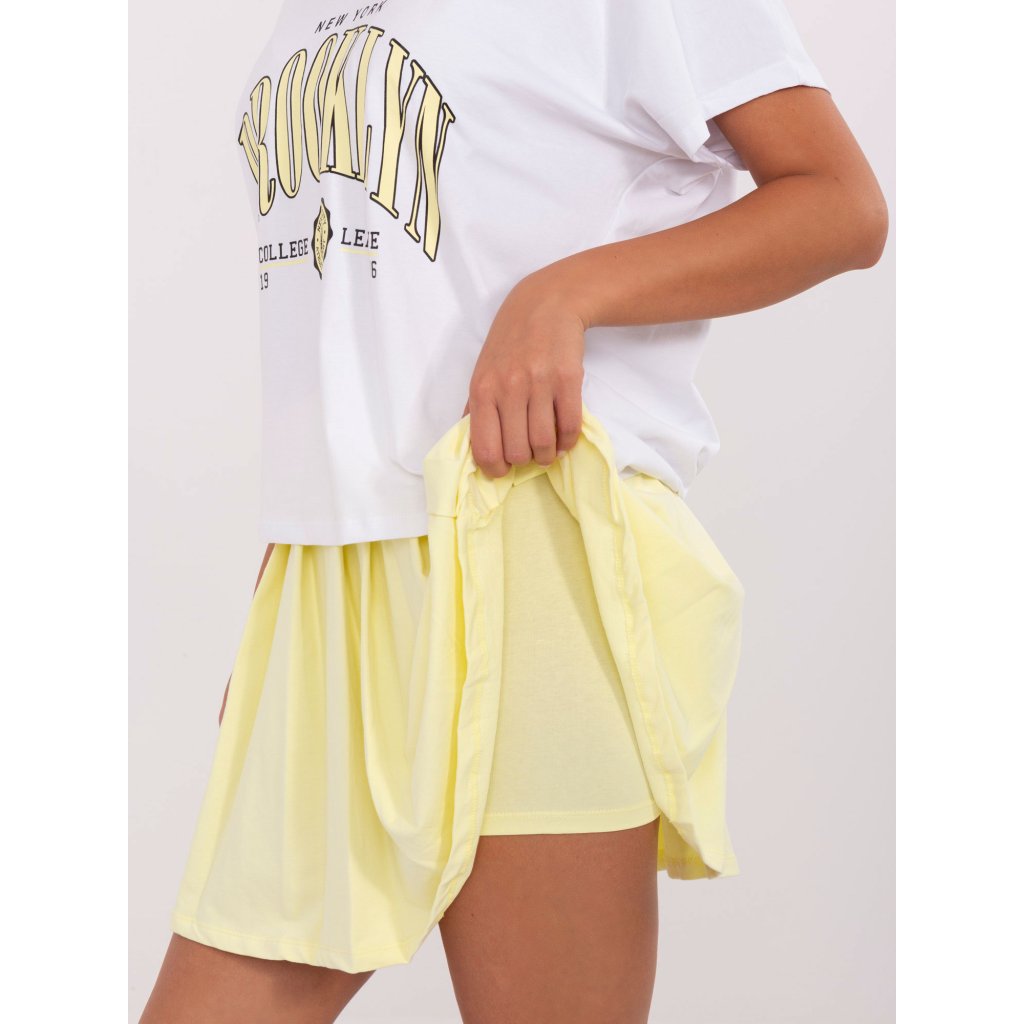 Míry ve velikosti jedna: podpaží - 64 cm, délka trička - 69 cm, délka rukávu - 28 cm (od švu), šířka boků - 56 cm, pas sukně - 36 cm (v rozložené poloze), pas sukně - 50 cm (v nataženém stavu), šířka boků - 74 cm, délka sukně - 43 cm.