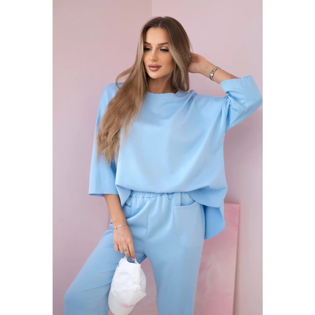 Komplet teplákové + kalhoty máslová látka modrý