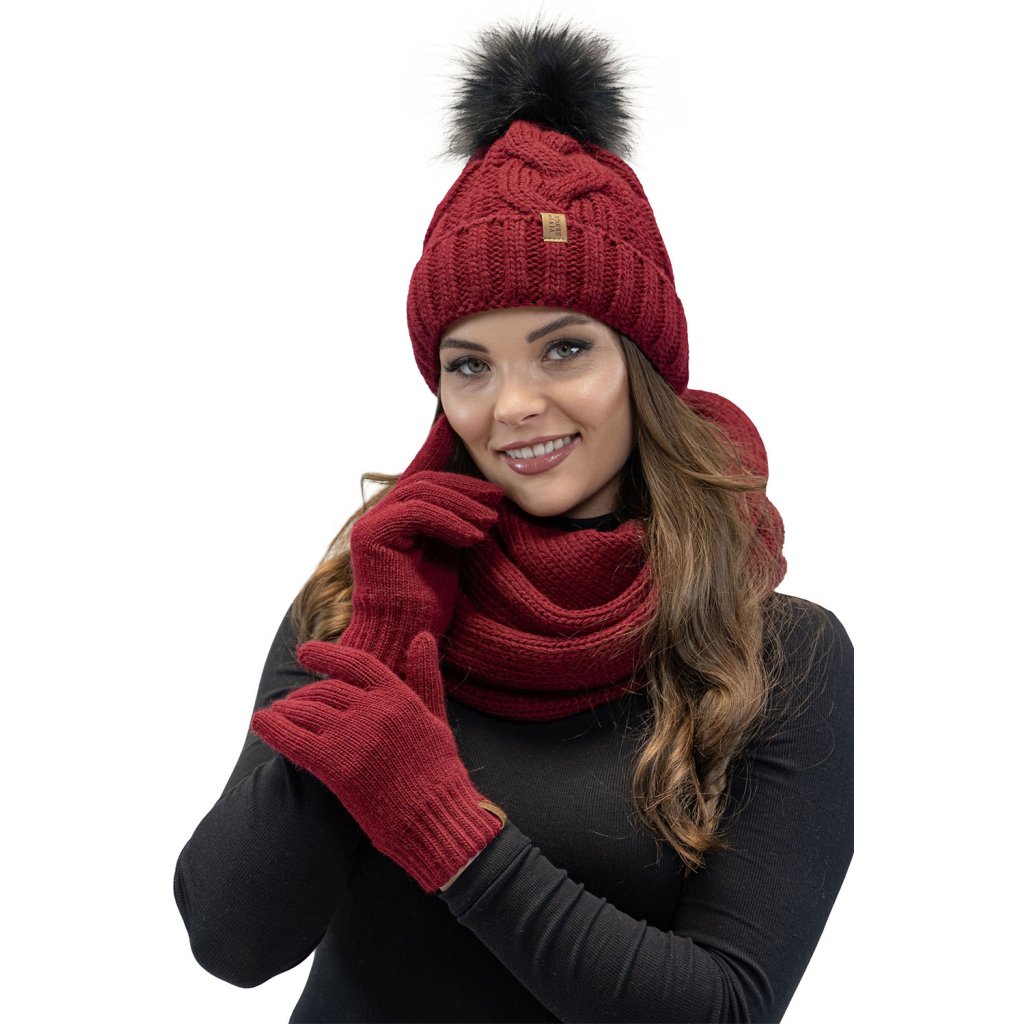 Módní set: čepice s bambulí, tunel a rukavice.Čepice: