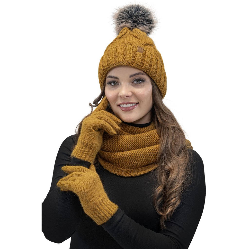 Módní set: čepice s bambulí, tunel a rukavice.Čepice: