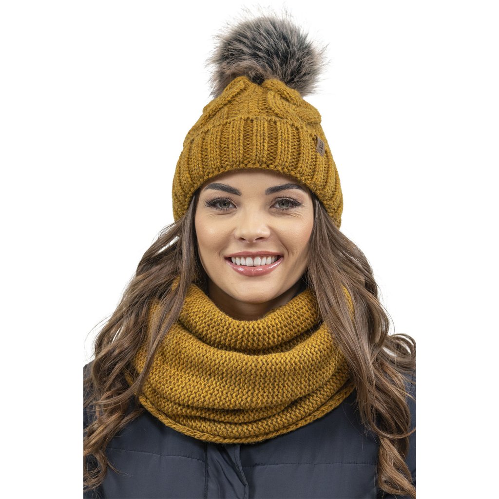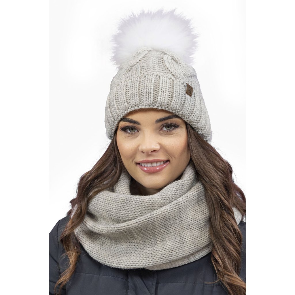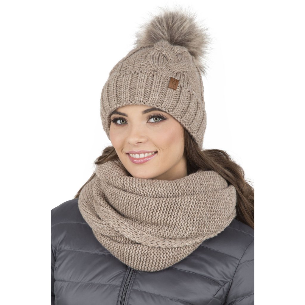 Módní set: čepice s bambulí, tunel a rukavice.Čepice: