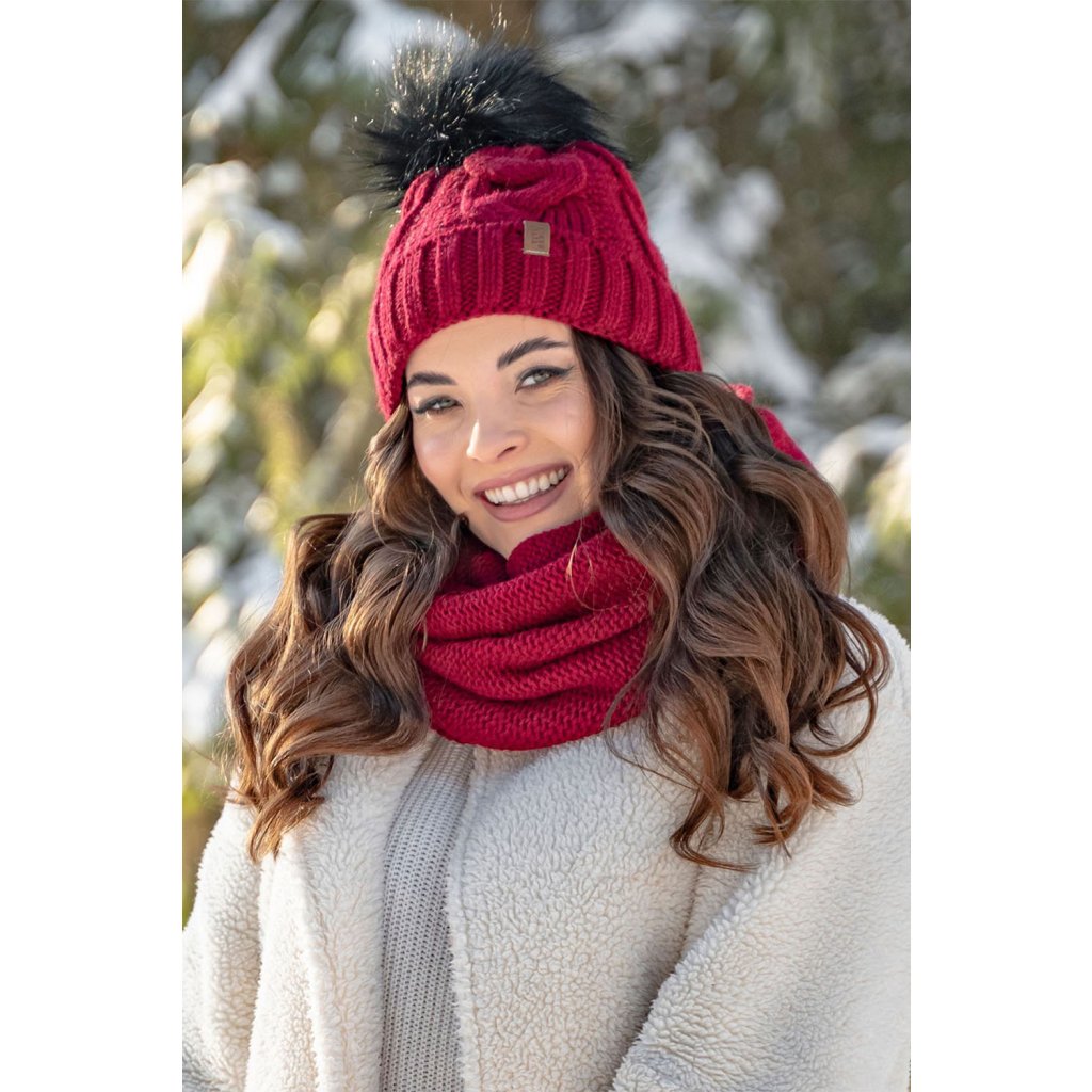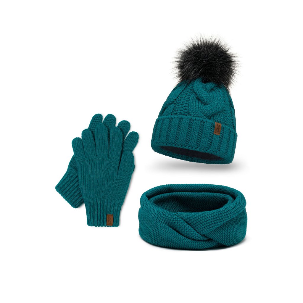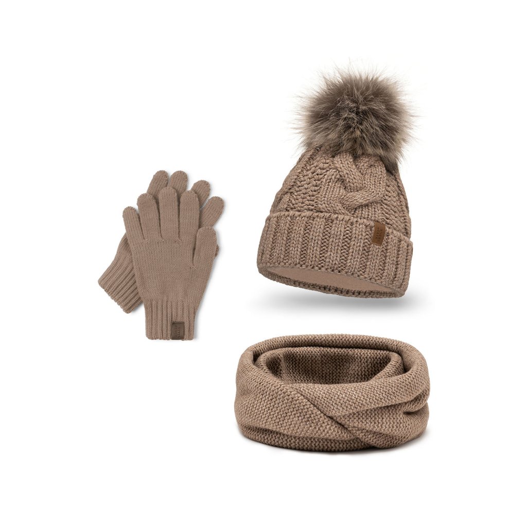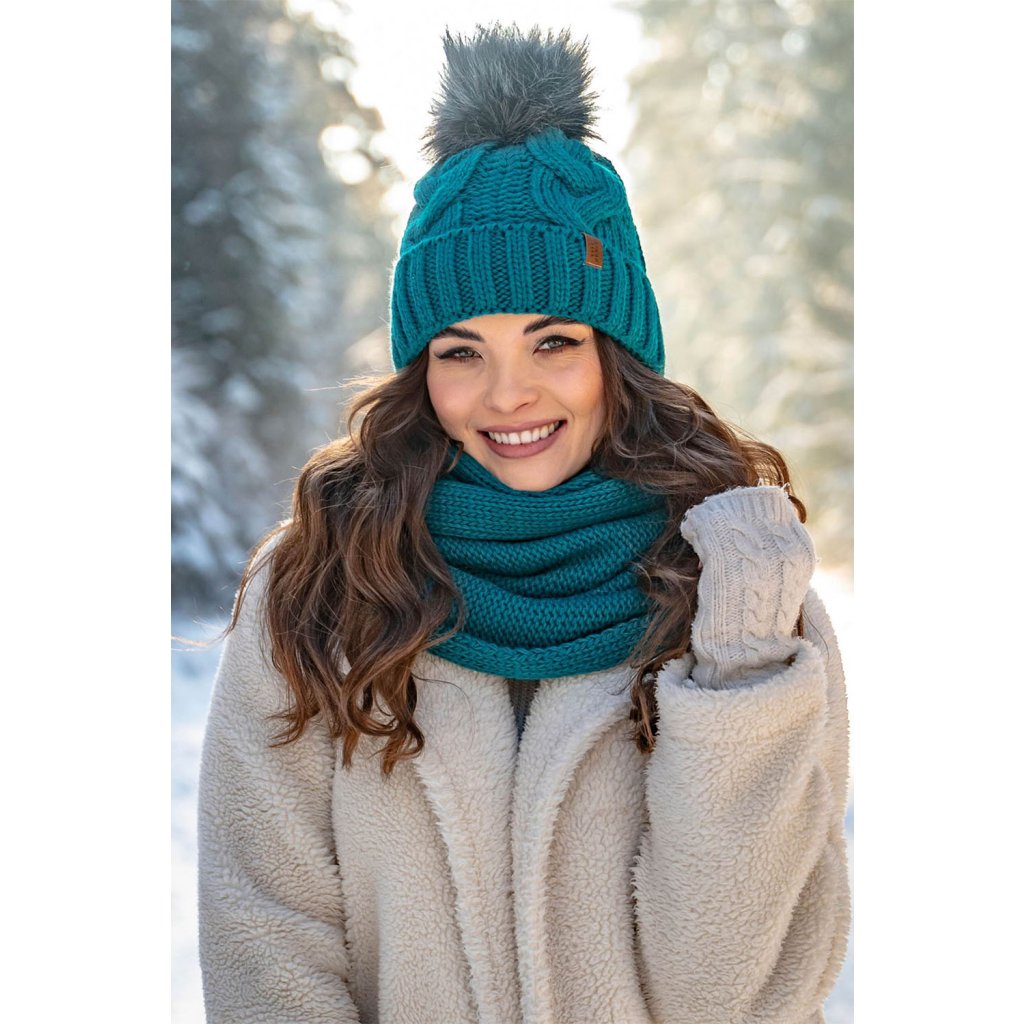 Módní set: čepice s bambulí, tunel a rukavice.Čepice: