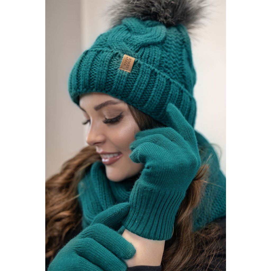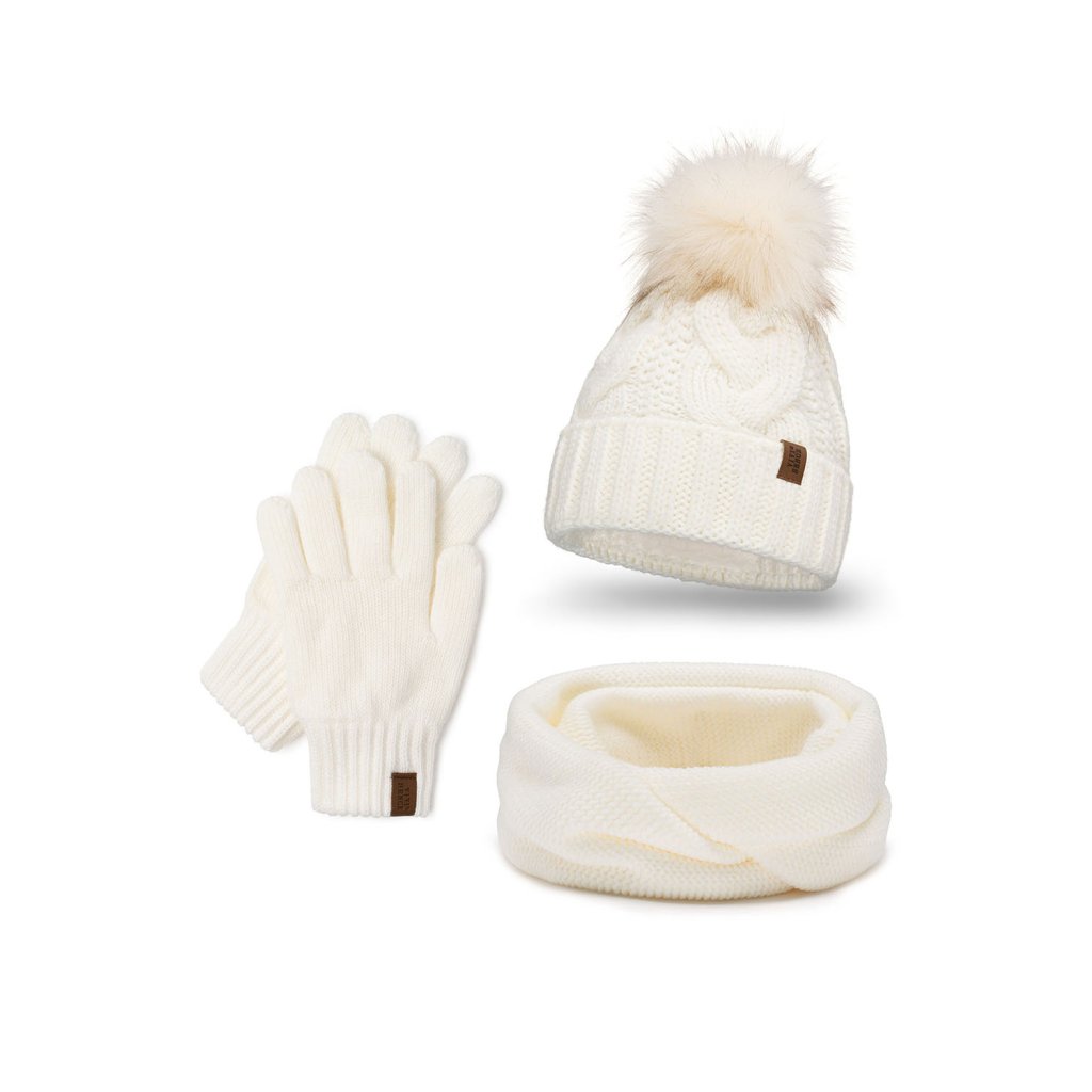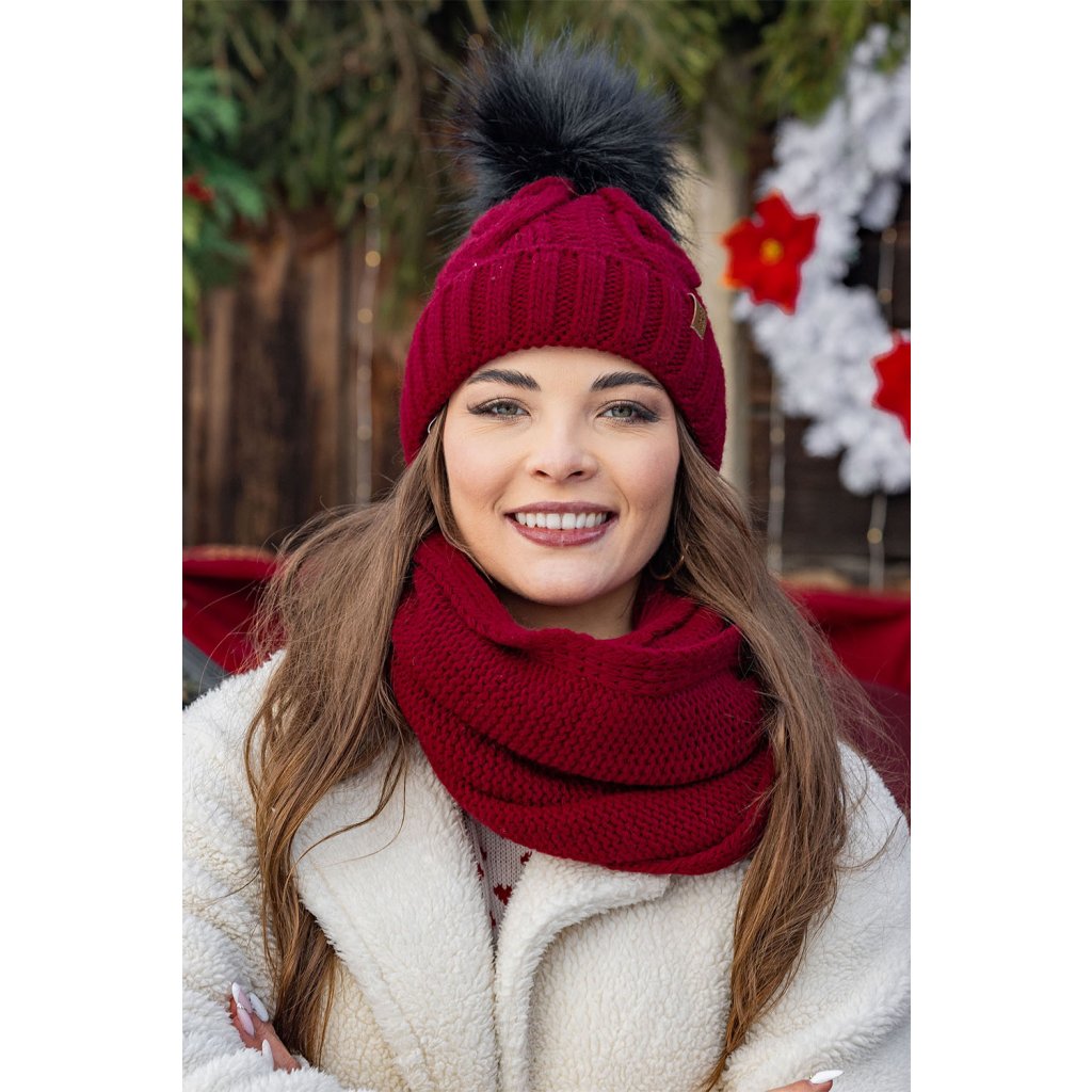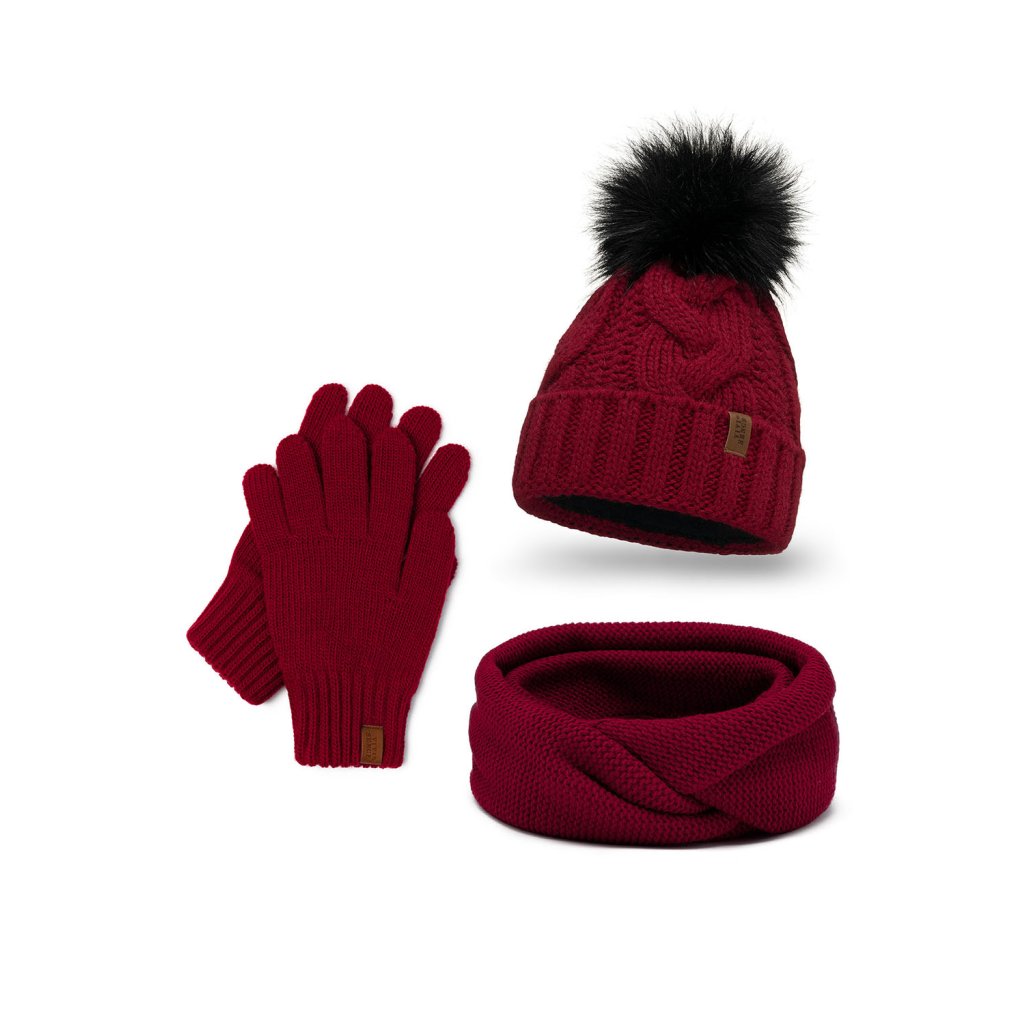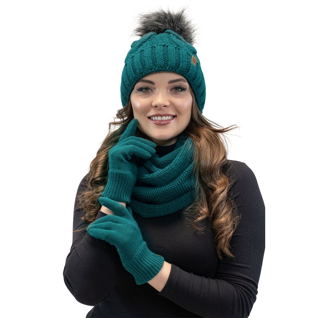 Módní set: čepice s bambulí, tunel a rukavice.Čepice: