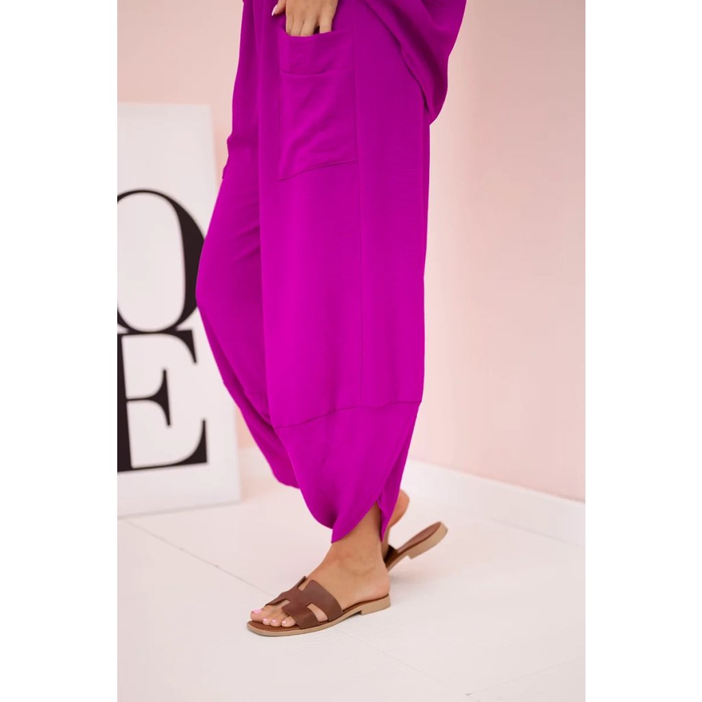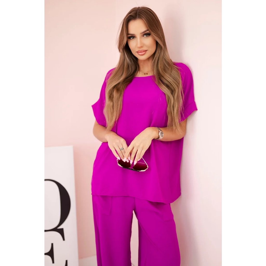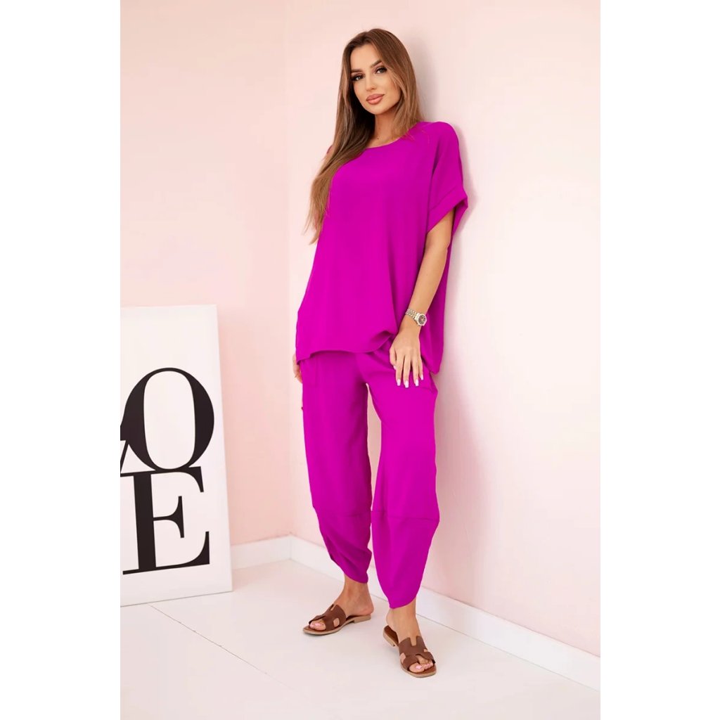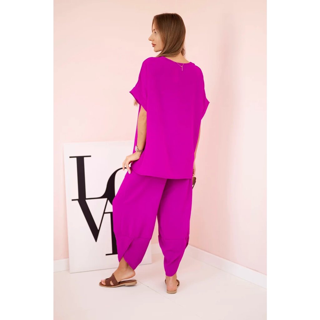 Komplet z viskózy halenka + kalhoty tmavě fialová