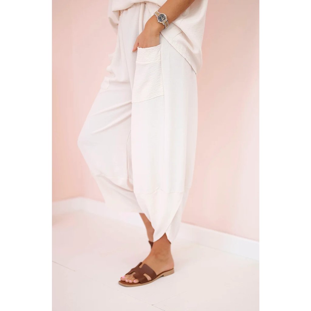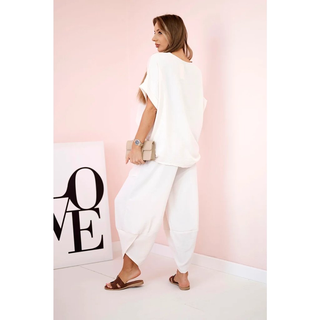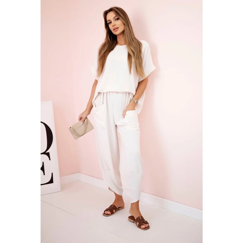 Objevte jedinečný komplet vyrobený z prodyšné a jemné viskózy, který kombinuje styl a pohodlí při nošení. Halenka s klasickým střihem skvěle padne na postavu, zajišťuje volnost pohybu a elegantní vzhled. Díky lehké tkanině je velmi příjemná na pokožce a ideální pro každé roční období. Kalhoty, navržené s důrazem na pohodlí, mají elastický pas a volnější střih, což zajišťuje skvělé přizpůsobení postavě. Jedná se o univerzální soupravu, která se skvěle hodí jak pro každodenní outfity, tak pro elegantnější příležitosti. Zvolte komplet z viskózy, pokud si ceníte lehkosti, přírodních tkanin a moderního vzhledu. Perfektní volba pro ženy, které se chtějí cítit stylově a pohodlně po celý den. Velikost je univerzální a vhodná pro ženy nosící velikost S, M nebo L.