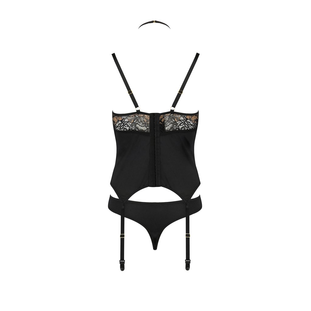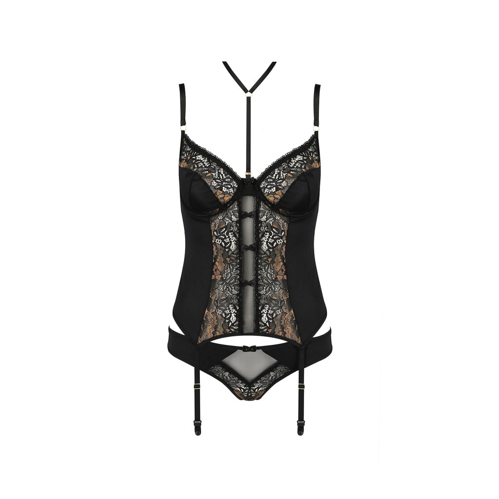 Sexy božský korzet v černé barvě ze zlaté krajky a saténového úpletu- nevyztužené košíčky