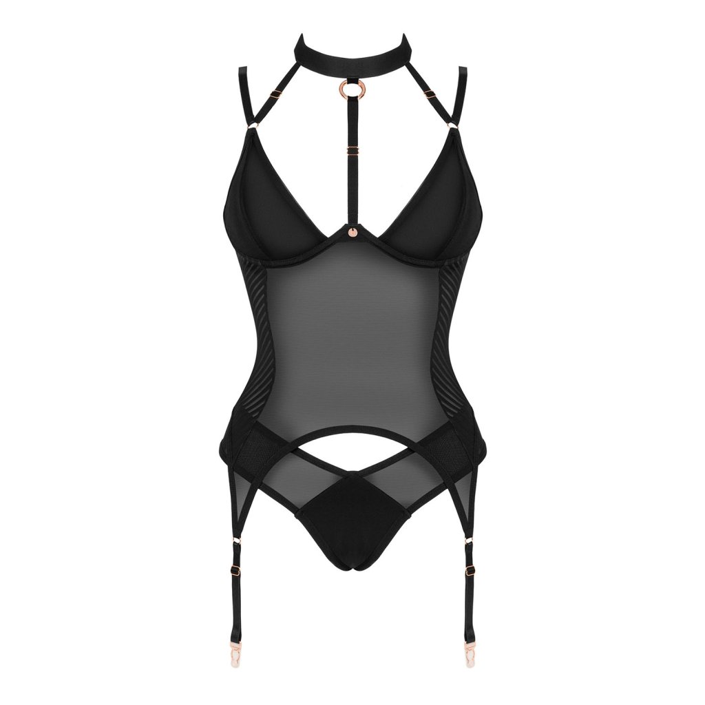Korzet Brasica Tento zázračný korzet vám ukradne (nejen) srdce! Dokonale zvýrazněné poprsí, krásný střih, odpovídající kalhotky. Růžově zlaté detaily, šperkové zapínání vzadu za krkem a odepínací pásek mezi prsy - všechny tyto prvky dohromady tvoří naprosto bezchybný svůdný doplněk, přesně takový, jaký máte ráda... Zjistěte další podrobnosti: - Sada obsahuje korzet a kalhotky. - košíčky s kosticemi - nastavitelná ramínka a podvazkové pásy - pohodlné nošení - obojek zapínaný vzadu na bižuterní řetízek - pásek mezi prsy a kovový kroužek jsou odnímatelné - je na vás, jak je budete nosit - na dotek jemná tkanina - příjemná na nošení (90% polyamid, 10% elastan)Doplňkové parametry