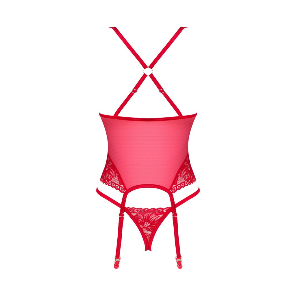 Chcete zvýšit teplotu v ložnici? Korzet a tanga Lacelove jsou perfektním řešením. Tento smyslný set v intenzivní červené barvě dokonale zvýrazní vaši postavu a krajkové vsadky přitáhnou mnoho pozornosti. Připravte se na komplimenty!Zjistěte více podrobností: - červený korzet a tanga - Perfektně sedí díky nastavitelným popruhům - kostice jemně tvarující poprsí - květinová krajka &ndash atraktivní detail - stříbrný přívěsek &ndash dodává eleganci - pružný materiál &ndash záruka pohodlí