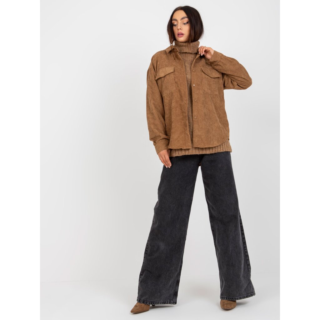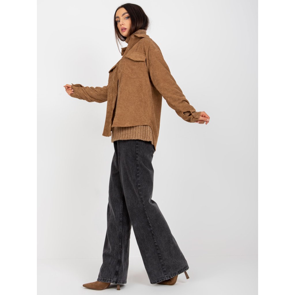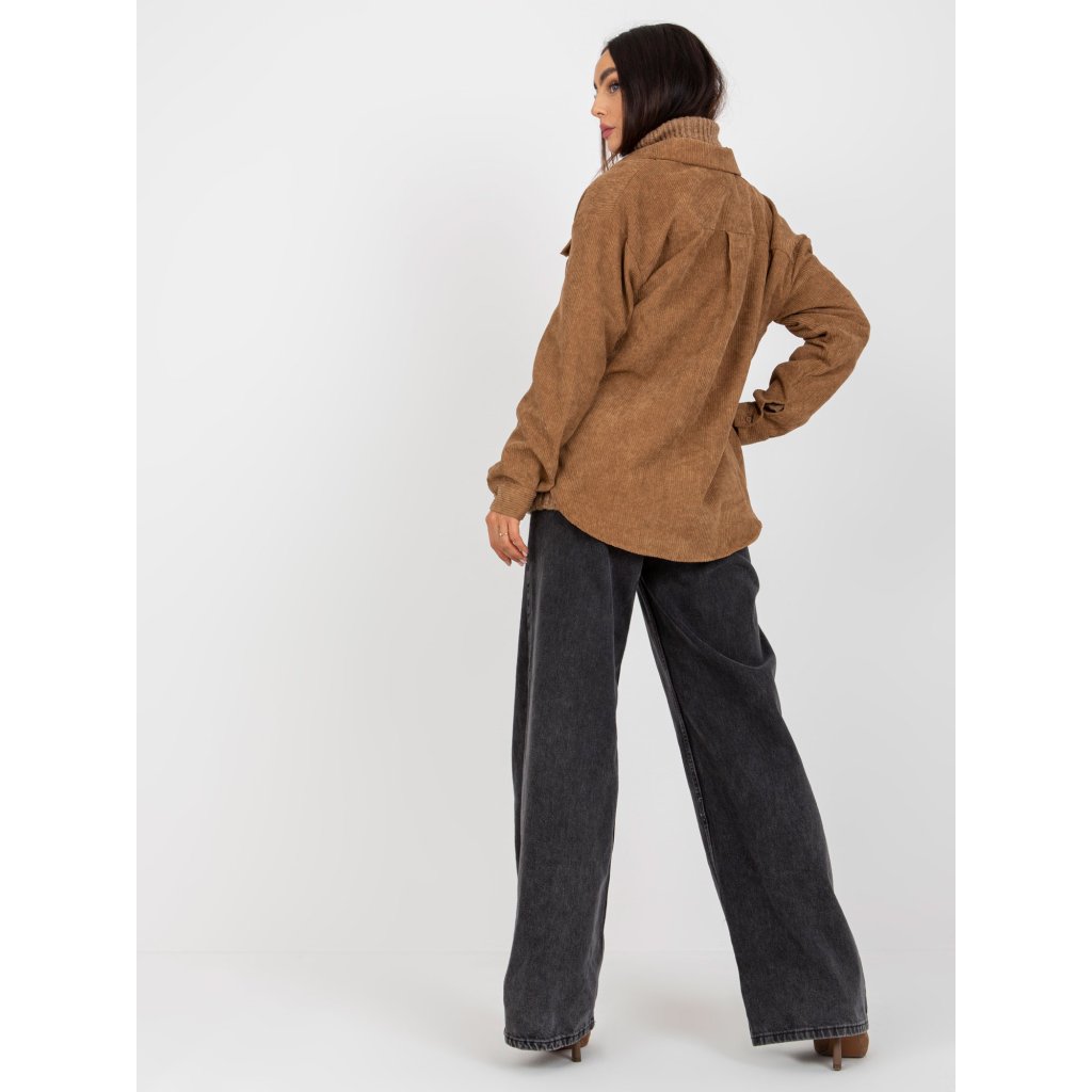 Černá manšestrová košile s kapsami a s dlouhým rukávem.vzor: hladký