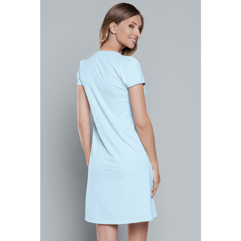 Mateřská noční košile Italian Fashion Felicita s krátkým rukávem, vyrobená z příjemné, přírodní bavlny. Speciální střih zaručuje pohodlí zejména během těhotenství. Horní část šitá tak, aby bylo umožněno snadné kojení během noci. Pod prsy vázání pomáhá regulovat potřebnou šířku. Košile v pastelových barvách s potiskem mini puntíků ve velmi příjemném provedení. Složení: 100% bavlna.Doplňkové parametry