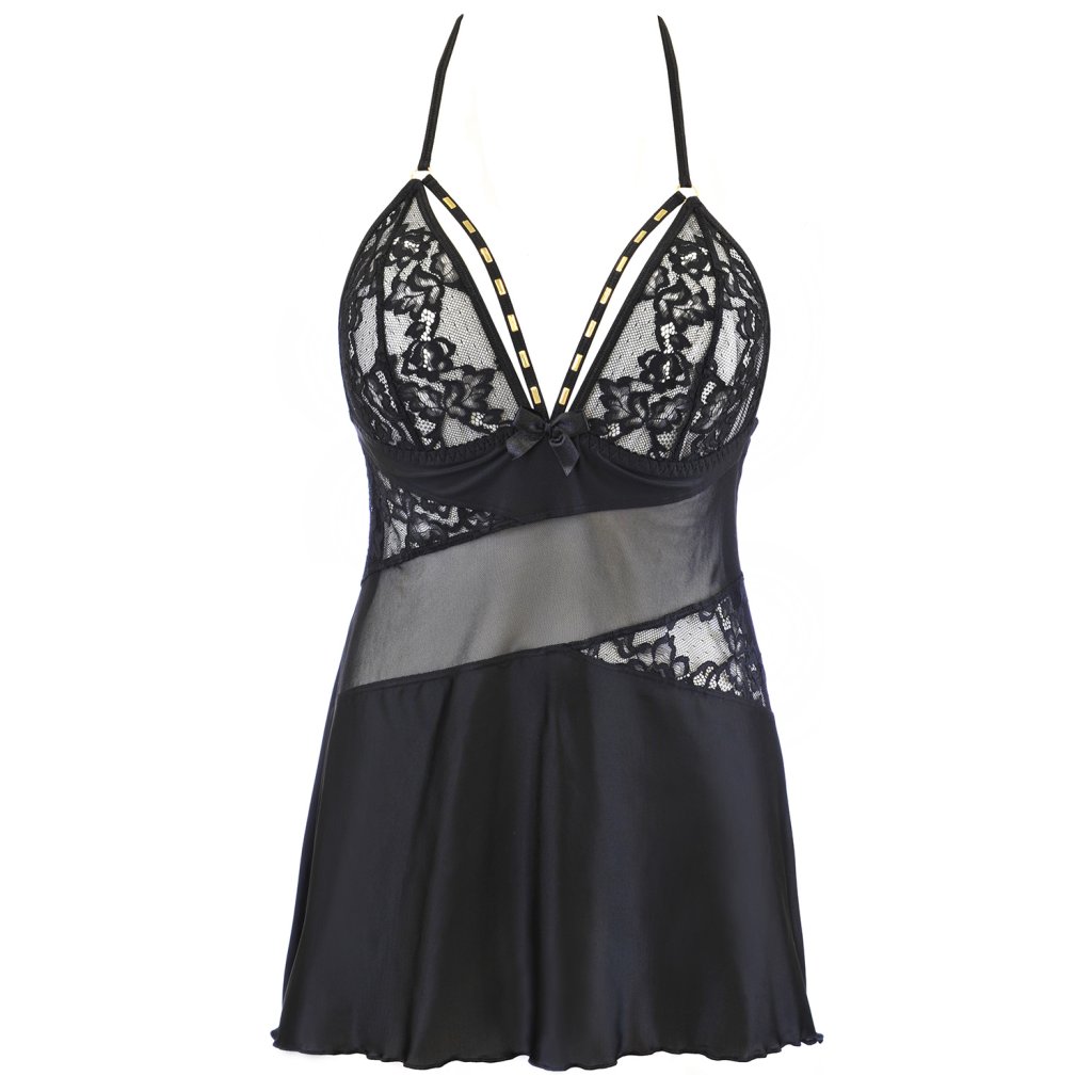 Objevte svou vnitřní dravost v nápadném černém tričku. Celá je vyrobena z velmi měkkého a pružného mikrovlákna s krajkovými vsadkami. Dekolt zdobí pruhy se zlatými doplňky. Nastavitelná, neodepínatelná ramínka se vzadu kříží. Součástí jsou sexy tanga.Složení: 82% polyamid, 17% elastan, 1% bavlna.