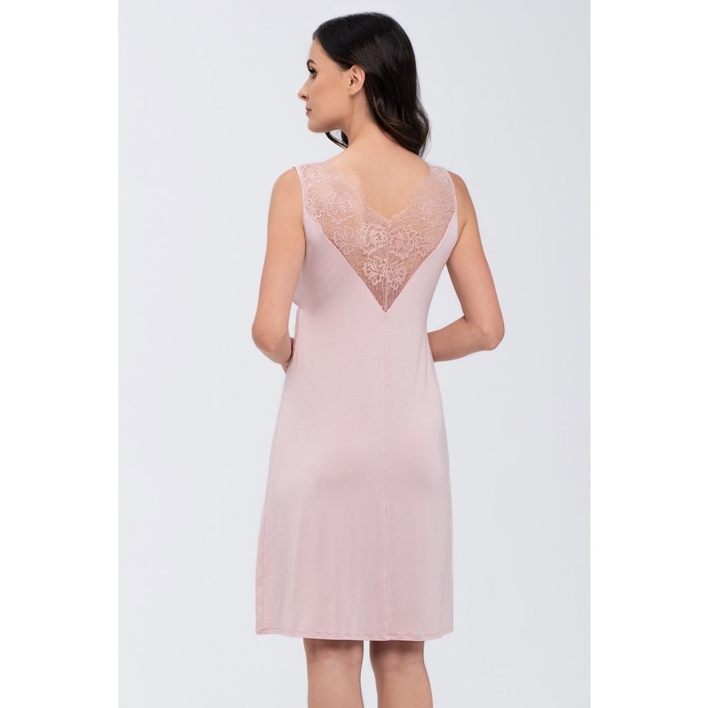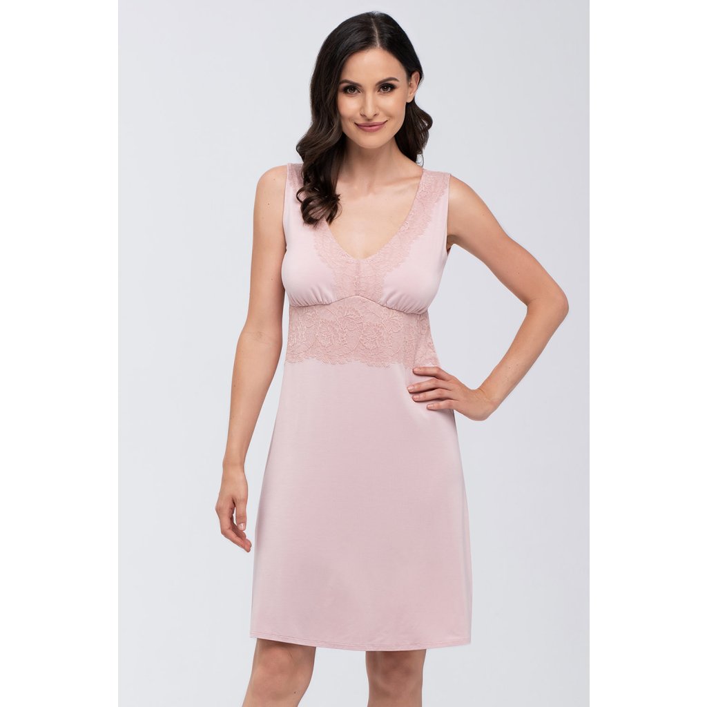 Dámská noční košile na široká ramínka je ozdobená květinovou krajkou ve výstřihu, okolo pasu a na zádech. Noční košile je ušitá z kvalitní měkké viskózy, která poskytuje vysoký komfort při nošení.