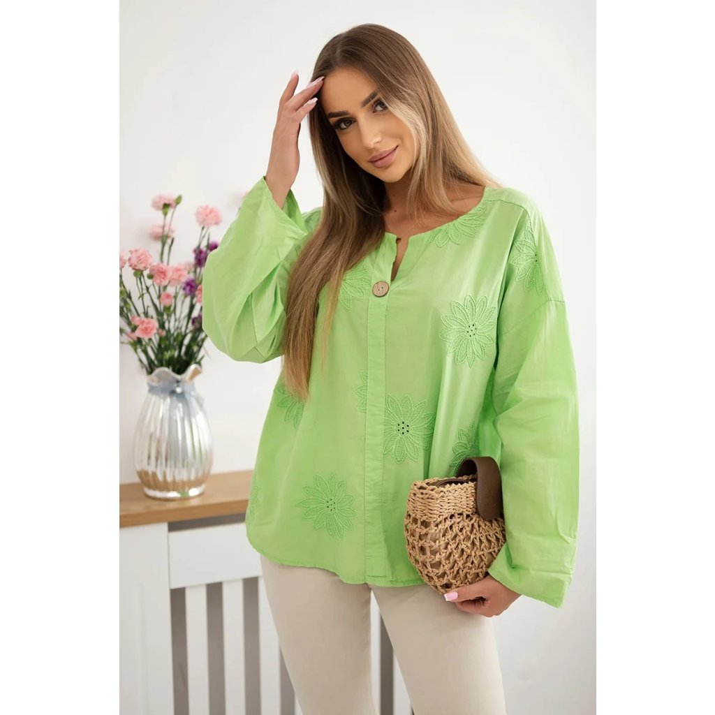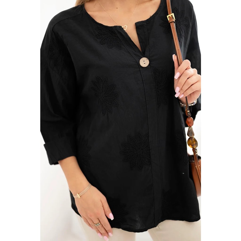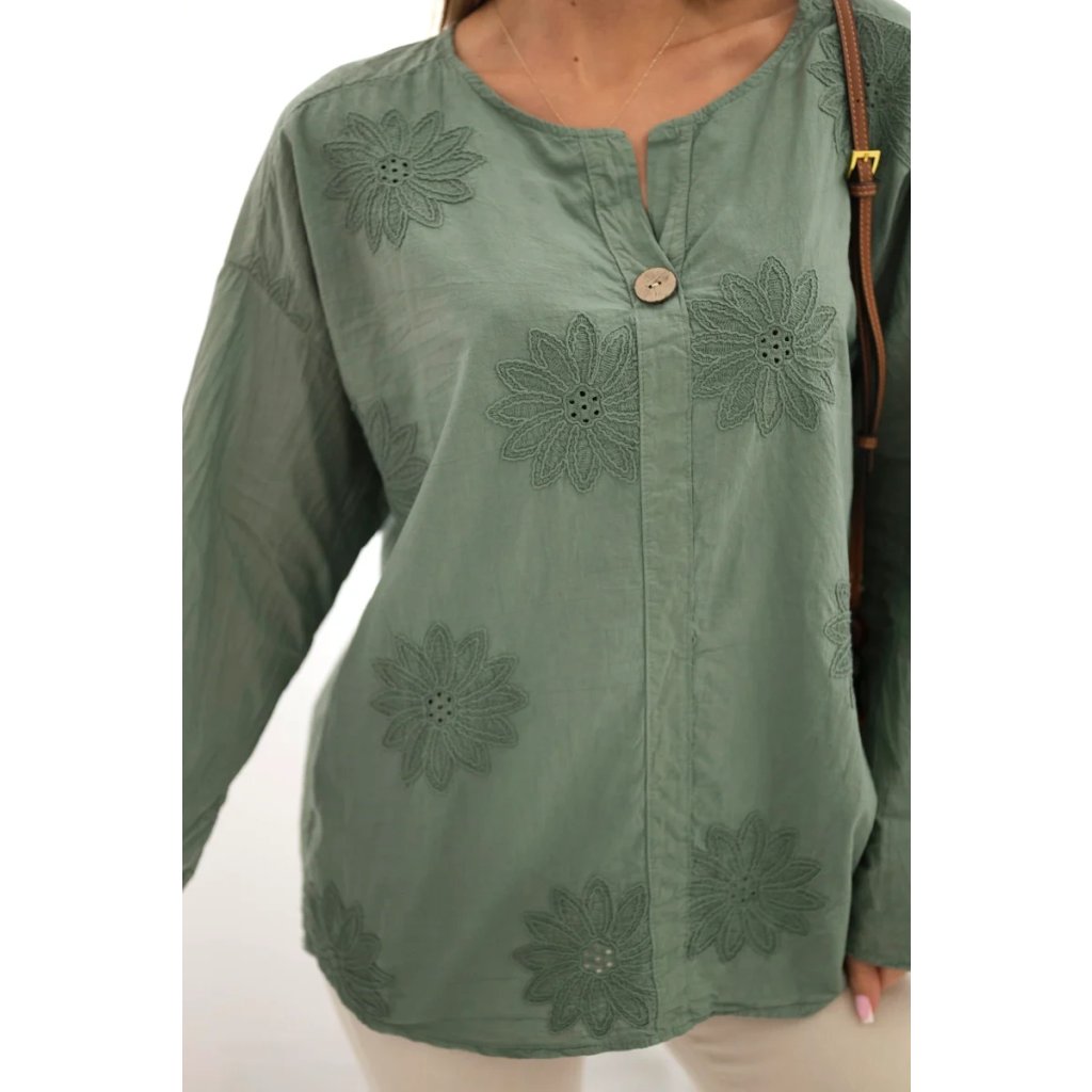 Objevte jedinečnou košilovou halenku, která spojuje nadčasovou eleganci s uměleckým výrazem. Vyrobena z nejkvalitnější tkaniny, poskytuje nejen úžasný komfort nošení, ale také dlouhou životnost a snadnou údržbu. Precizně provedená výšivka tvoří jemný, ale výrazný detail, který dodává halence jedinečný charakter a odlišuje každý outfit. Univerzální košilový střih umožňuje snadné kombinování s elegantními kalhotami i ležérními džínami, čímž vytváří perfektní vzhled jak pro pracovní schůzky, tak i pro každodenní nošení. Tato halenka je určena ženám, které ocení detaily a vysokou kvalitu, a které chtějí do svého šatníku vnést kousek luxusu a individuality. Vyberte si košilovou halenku s vyšívaným vzorem a podtrhněte svou jedinečnost spojením klasiky s moderním stylem. Velikost je univerzální a odpovídá ženám nosícím velikosti S, M nebo L.