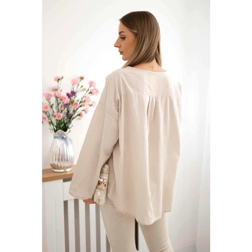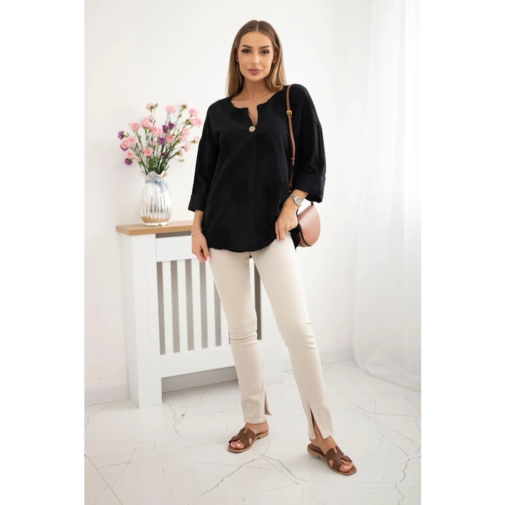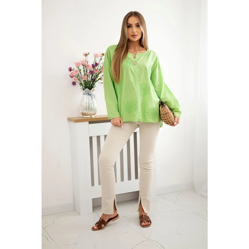 Objevte jedinečnou košilovou halenku, která spojuje nadčasovou eleganci s uměleckým výrazem. Vyrobena z nejkvalitnější tkaniny, poskytuje nejen úžasný komfort nošení, ale také dlouhou životnost a snadnou údržbu. Precizně provedená výšivka tvoří jemný, ale výrazný detail, který dodává halence jedinečný charakter a odlišuje každý outfit. Univerzální košilový střih umožňuje snadné kombinování s elegantními kalhotami i ležérními džínami, čímž vytváří perfektní vzhled jak pro pracovní schůzky, tak i pro každodenní nošení. Tato halenka je určena ženám, které ocení detaily a vysokou kvalitu, a které chtějí do svého šatníku vnést kousek luxusu a individuality. Vyberte si košilovou halenku s vyšívaným vzorem a podtrhněte svou jedinečnost spojením klasiky s moderním stylem. Velikost je univerzální a odpovídá ženám nosícím velikosti S, M nebo L.