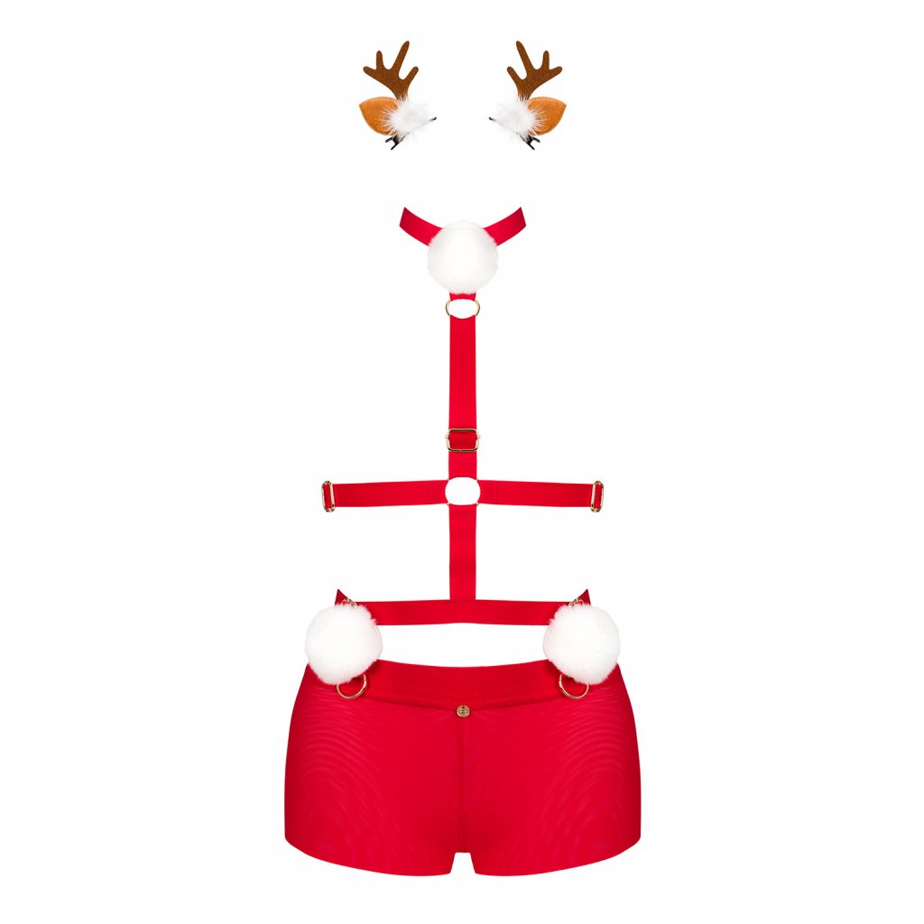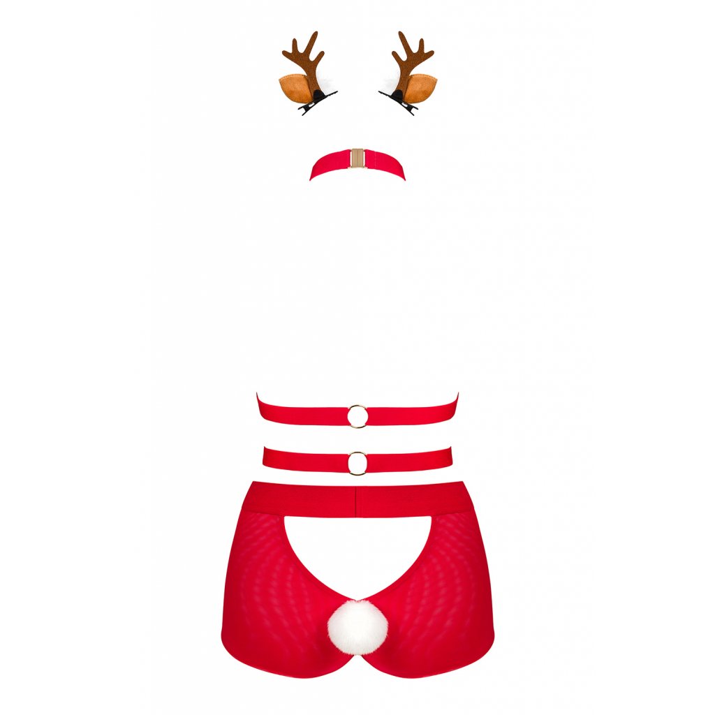 Kostým Ms Reindy ví, jak zvýšit teplotu zimního večera! Tato sexy souprava zaručuje příjemné chvíle s vaší drahou polovičkou. Svůdný střih a mimořádně pikantní prvky - postroj, kalhotky a čelenka s oušky, společně vytvářejí hravý outfit ve sváteční atmosféře.- sexy souprava