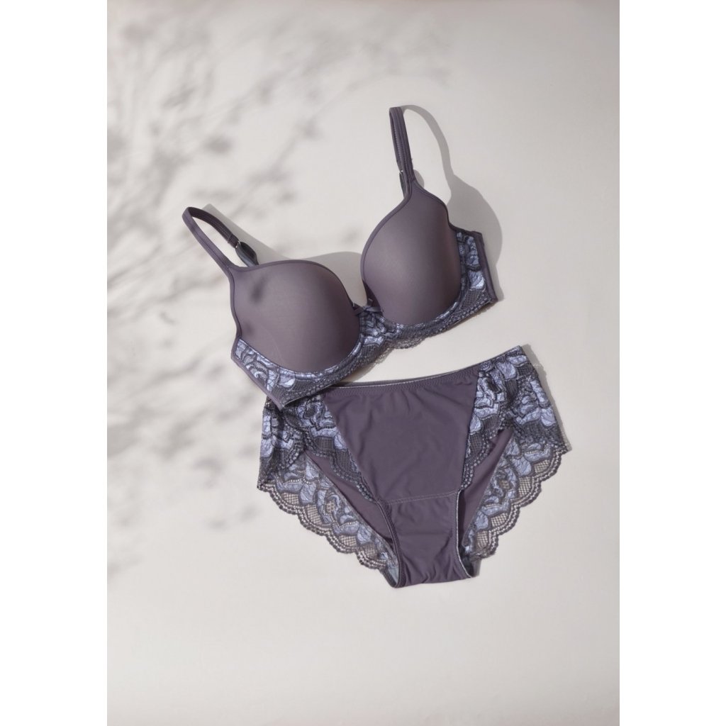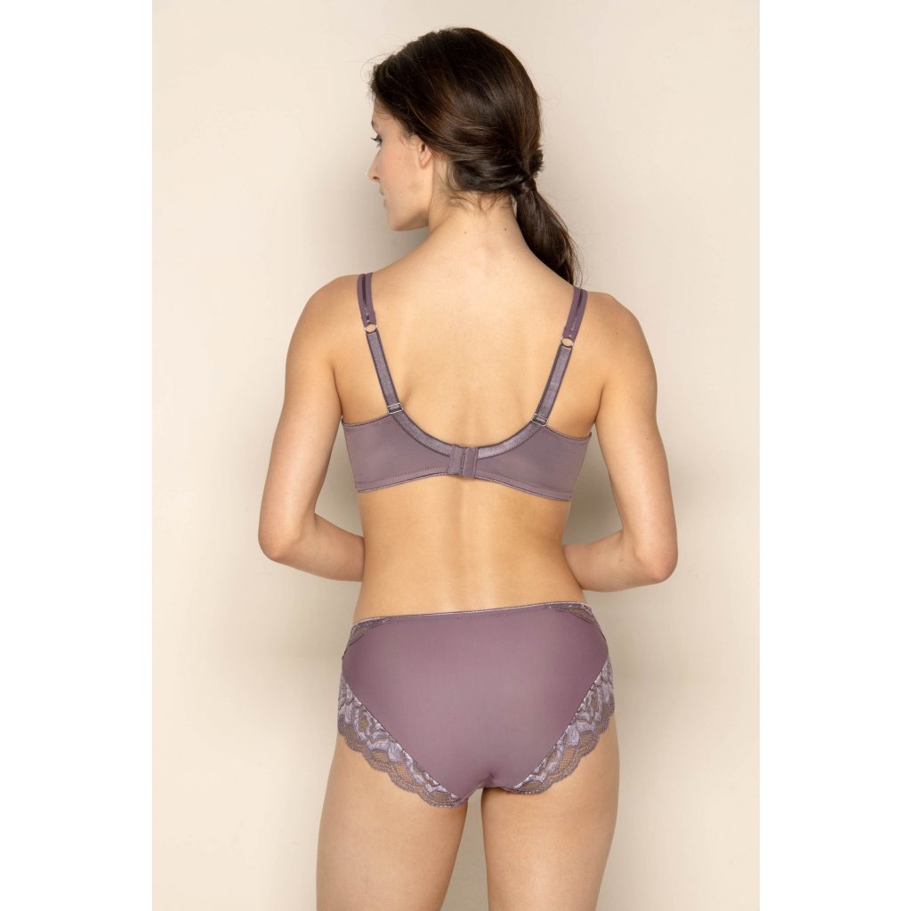 V kolekci Mauve nemohou chybět klasické středně vysoké kalhotky. Velmi oblíbený střih v jemném fialovo-hnědém odstínu je doplněn bohatou květinovou krajkou.