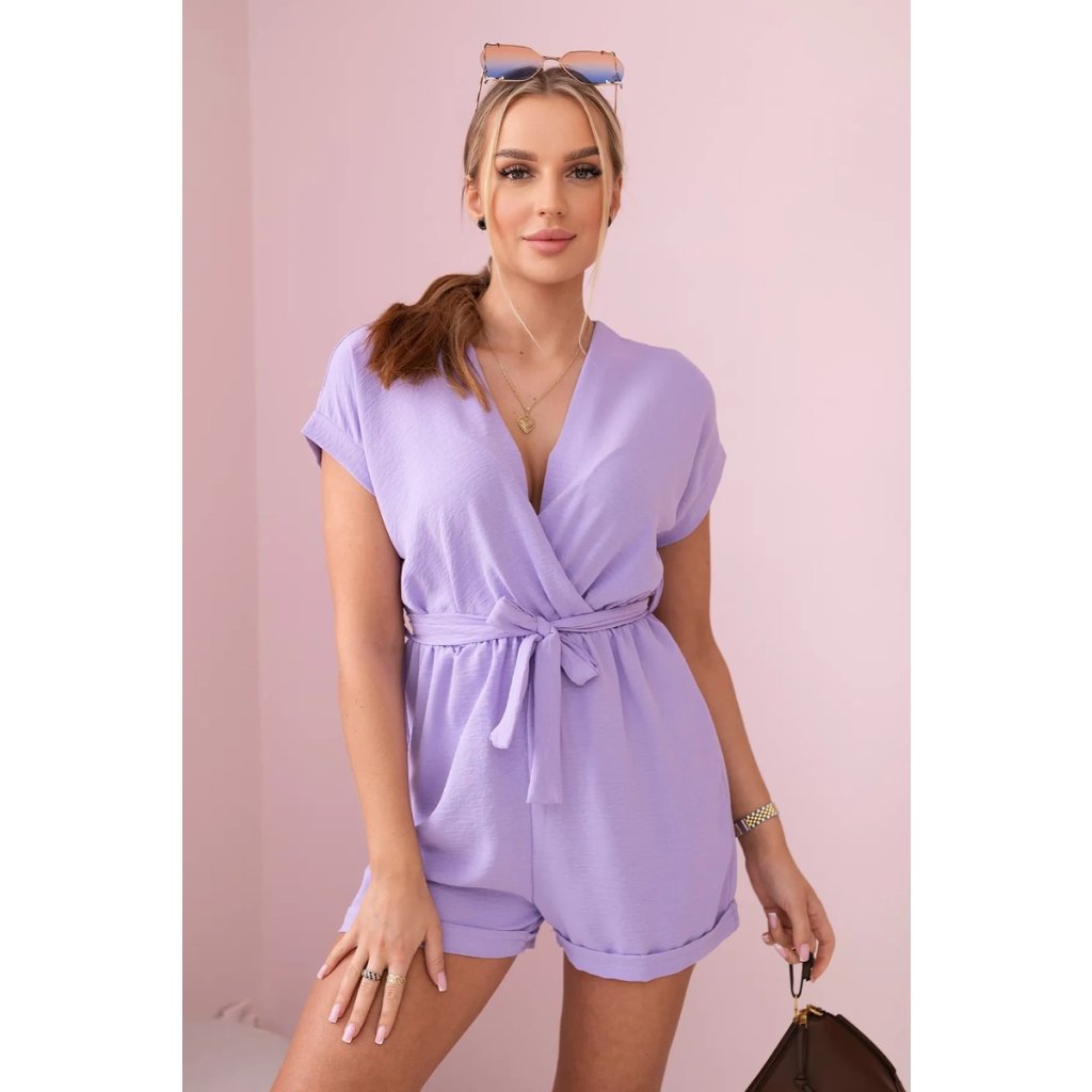 Krátký overal zavazovaný v pase světle fialová