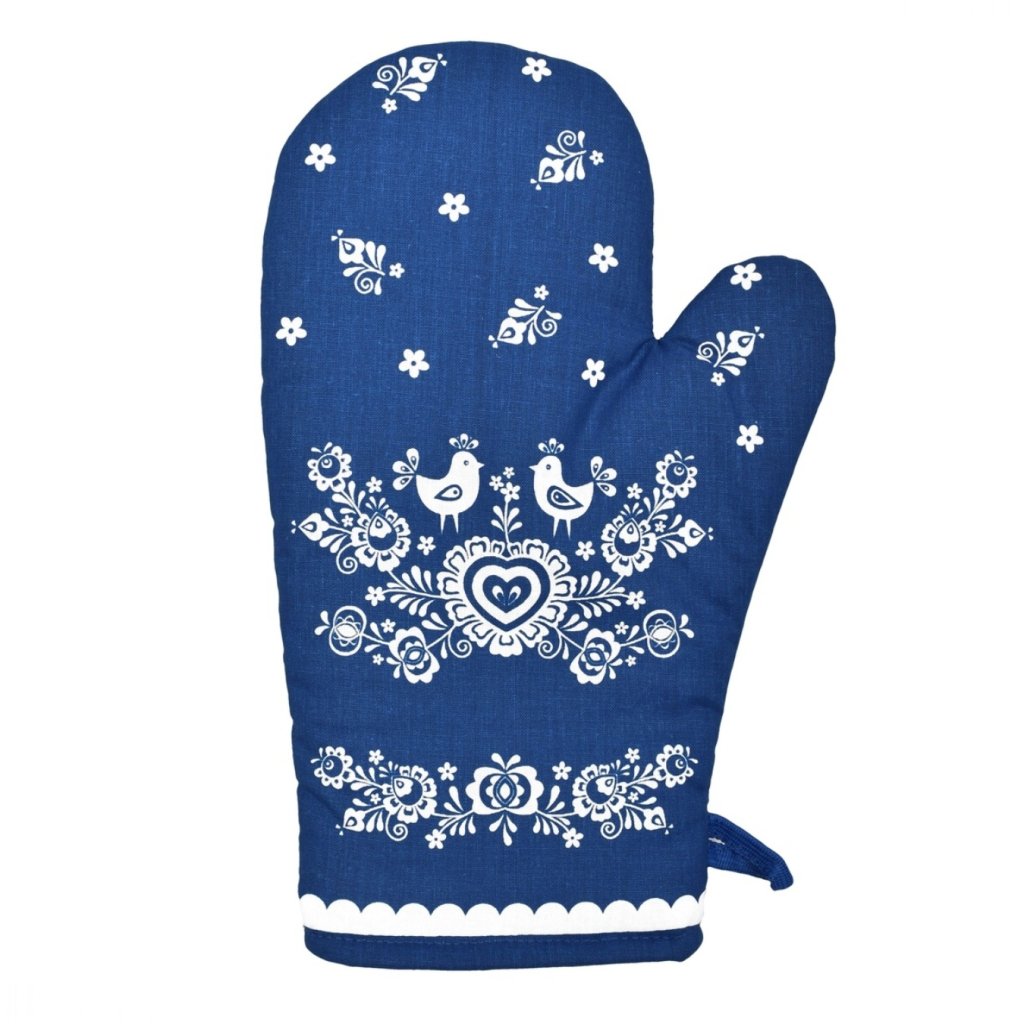 Kuchyňská chňapka Folk podklad modrý 1 ks 18x28 cm