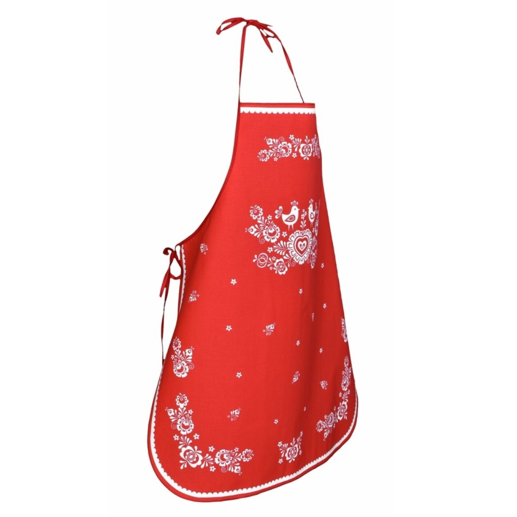 Kuchyňská zástěra Folk podklad červený 64x76 cm
